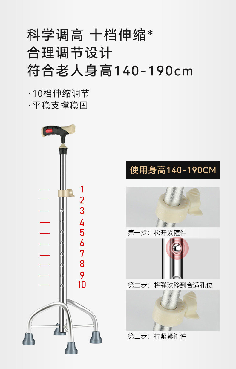 | Color Classification | Rose Gold, Lightless Model (10-Level Adjustment + Stable Load-Bearing) with Anti-Slip, Fixed Four-Leg Base.,Rose Gold Curved Handlebar Model (10-Level Adjustable + Stable Load-Bearing) with Non-Slip, Fixed Four-Leg Base.,Rose Gold Dual-Purpose Model (Single Leg + Large Four Legs) Stable and Non-Slip Fixed Large Four Legs,Rose Gold, No Light Model (10-Level Adjustment * Stable Load-Bearing) Anti-Slip, Fixed, Large, High-Footed Design,Silver Lightless Model (10-Level Adjustment * Thickened Aluminum Alloy) Anti-Slip Fixed Small Four Legs,Champagne Gold, No Light Model (10-Level Adjustment * Thickened Aluminum Alloy) with Non-Slip, Fixed Small Four-Leg Base.,Gold (No Light) - 10-Level Adjustable, Thickened Aluminum Alloy, Anti-Slip Fixed Small Four-Leg Base,Silver Massage Model (10 Levels of Adjustment * Thickened Aluminum Alloy) Non-Slip Fixed Large Four Legs,Champagne Gold, No Light Model (10-Level Adjustment * Thickened Aluminum Alloy) with Non-Slip, Fixed Four-Leg Base.,Gold (No Light) - 10-Level Adjustable, Thickened Aluminum Alloy, Anti-Slip, Fixed Four-Leg Base,Silver Curved Handle - (Comfortable Grip + Thickened Stainless Steel) - Four-Legged, Large Square Base,Copper-Colored Curved Handle Model - (Comfortable Handle + Thickened Stainless Steel) - Four Legs Fixed at the Four Corners,Silver Curved Handle - (Comfortable Grip + Thickened Aluminum Alloy) - Four-Legged, Large Square Base,Copper-Colored Curved Handle Model - (Comfortable Handle + Thickened Aluminum Alloy) - Four Legs Fixed at the Four Corners |