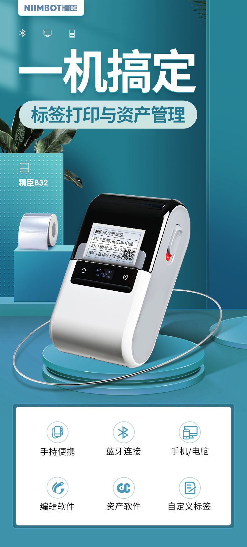 Jingchen B32/M3 Fixed Asset Label Printer Management System Software Qr Code Identification Sticker Card Barcode Machine Office Equipment Asset Inventory Machine Ribbon Thermal Transfer Label Machine