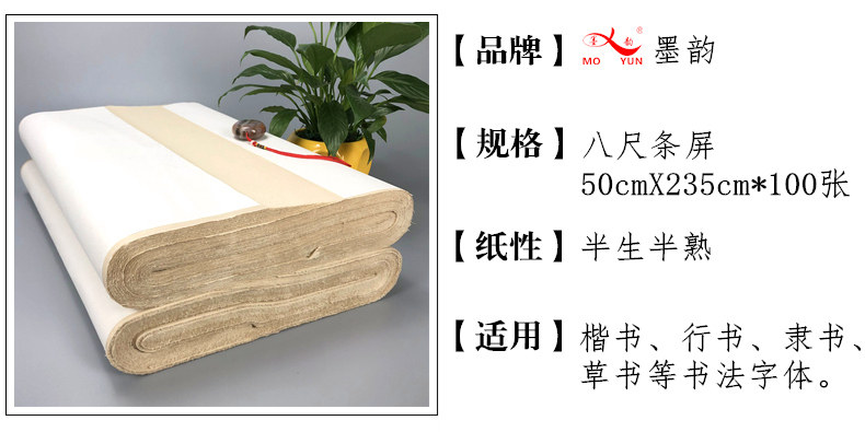 Eight-foot strip screen antique rough edge paper unframed thickened handmade bamboo pulp ruler eight-screen rice paper brush calligraphy special work paper practice character calligraphy paper brush calligraphy paper half-baked and half-cooked calligraphy practice paper