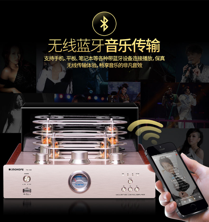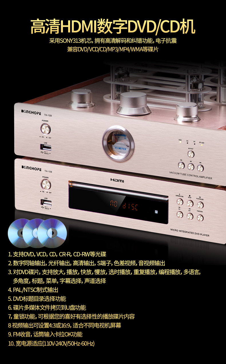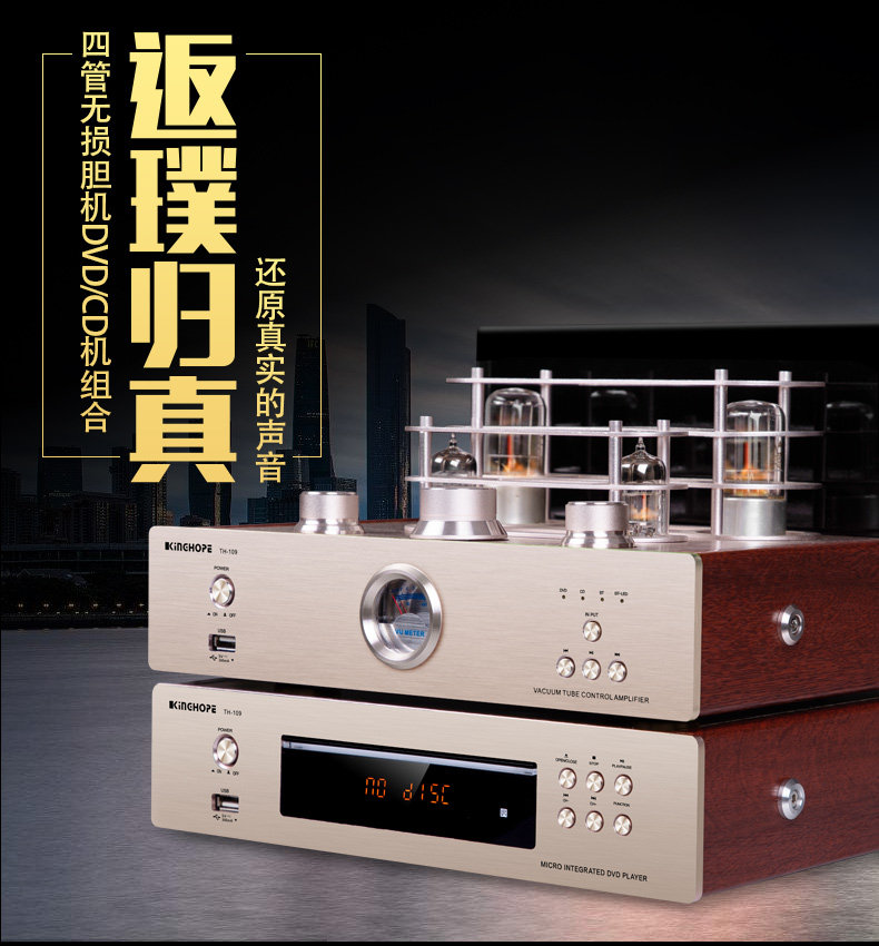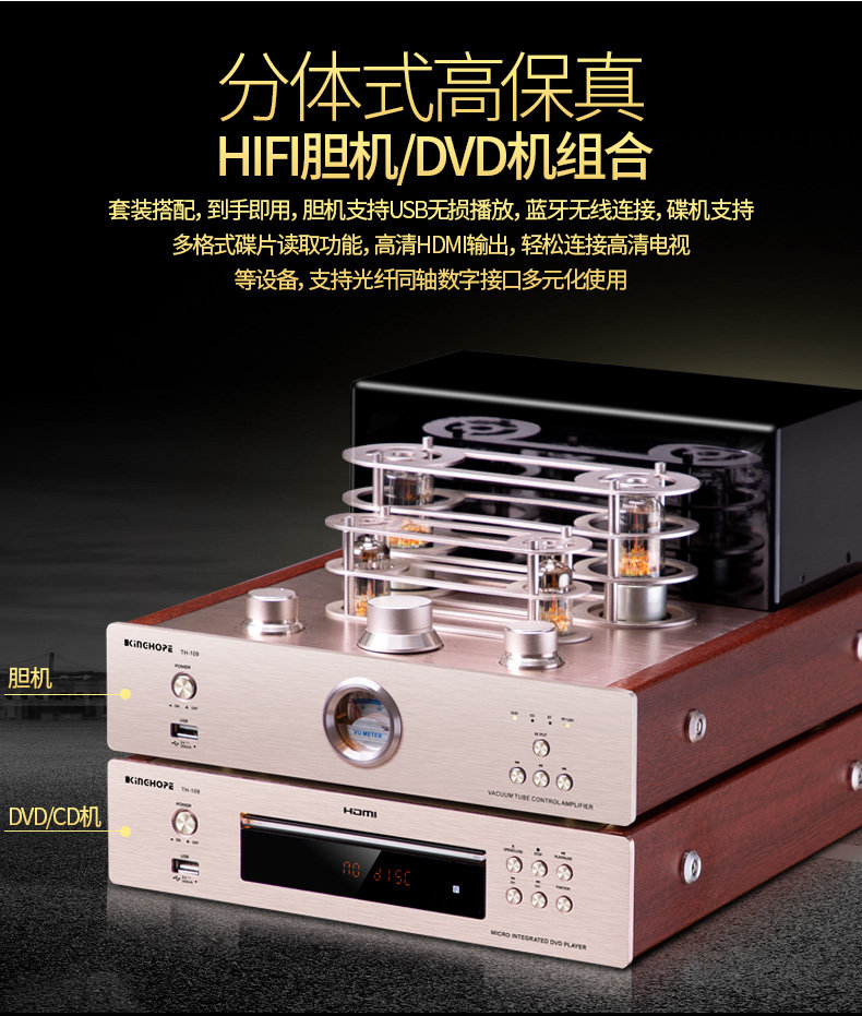 Kinghope Th-109 Audiophile Hifi Tube Amplifier USB Bluetooth Lossless Power Amplifier Cd Combo Set