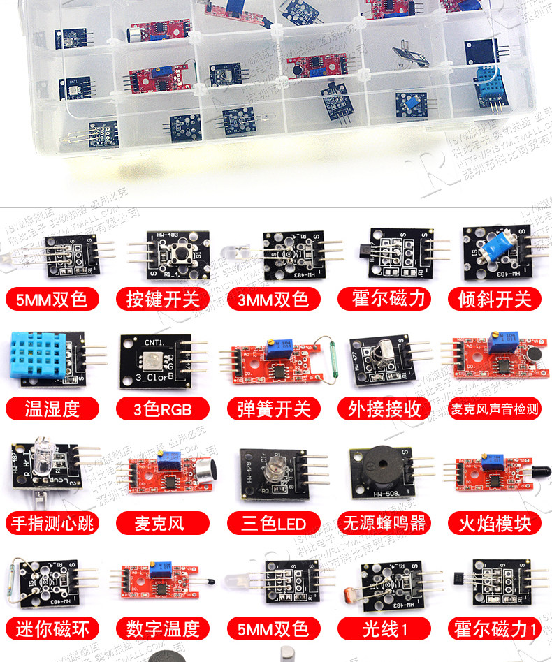 | Color Classification | 37 Types of Sensor Modules (Boxed),37 Types of Sensor Modules (Packed in Bags),37 Types of Sensor Modules (Boxed) + Breadboard Kit,37 Types of Sensor Modules (Packed in Bags) + Breadboard Kit |