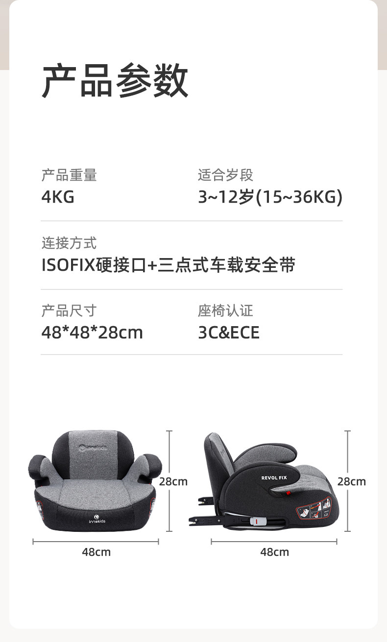 Innokids Kids Safety Seat Booster Cushion for Cars 3-12 Years Old Car-Mounted Portable Seat Cushion Isoifx