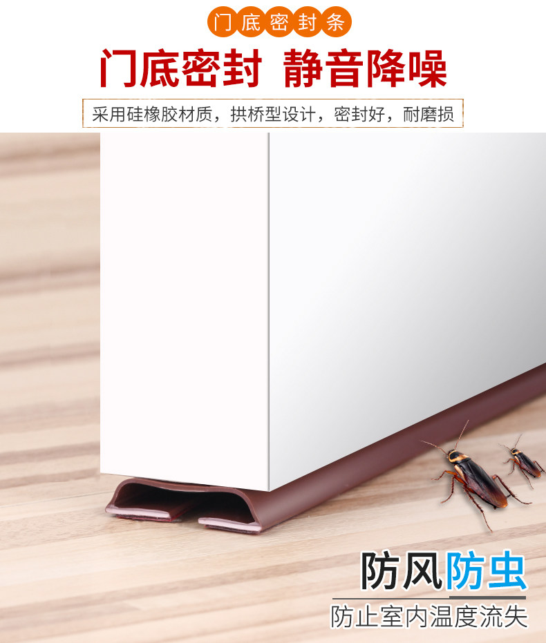 Top Valley Floor-Mounted Door Bottom Sealing Strip, Bedroom Wooden Door Gap Soundproofing Strip, Arch-Shaped Door Seal Strip, Windproof, Warm and Insect-Proof Strip