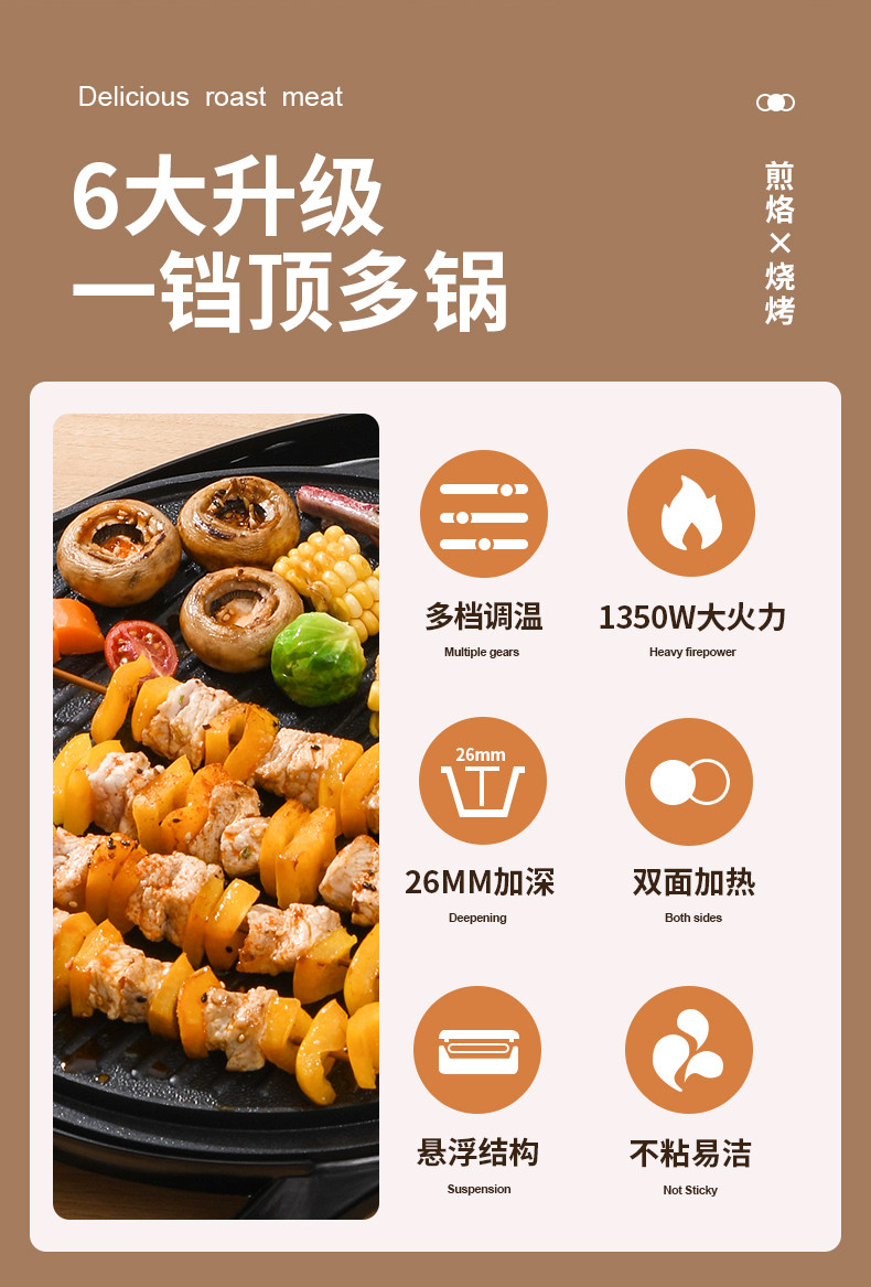 | Electric Baking Pan Heating Surface | Double-Sided Heating |