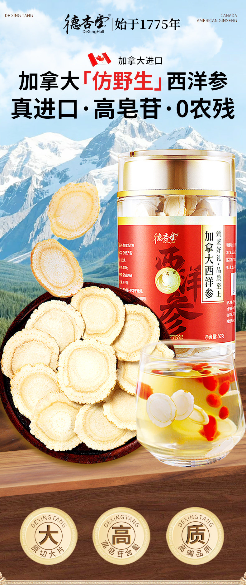 | Package Type | Hot Sellerâ¤ăWild-Harvested Styleă2-3Cm Canadian 6-Year-Old Ginseng, Extra Large Slices, 100g,ăImitation Wildâď¸1.2cm Canadian 5-Year-Old Ginseng, 100g,ăWild-Style Imitationă1.4-1.6Cm Canadian 5-Year-Old Ginseng, 100g,ăWild-Harvest Styleă2.5-3Cm Canadian 6-Year-Old Ginseng, Extra Large Slices, 100g,1.2cm 0.5kg Pack 500g [Canadian Imitation Wild],2-3cm 0.5kg Pack 500g [Canadian Imitation Wild],1.2cm Canadian 5-Year-Old Ginseng 200g Gift Box,1.2cm Canadian 5-Year-Old Ginseng 100g Gift Box,1.0cm Canadian 5-Year-Old Ginseng 60g,ăPremium Gift Setă2Cm Canadian 6-Year-Old Ginseng 100g Gift Box,Five Blessings Platter Gift Box 240g,Four Happiness Platter Gift Box 120g,Six Treasures Platter Gift Set, 210g,Chinese Red-12 Cans [6-Year-Old Ginseng Gift Box (2cm Super Large Piece)],ăBase Cultivationă0.8Cm Canadian 4-Year-Old Ginseng 100g,ăBase Cultivationă1.2Cm Canadian 5-Year-Old Ginseng 100g,ăBase Cultivationă2-3Cm Canadian 6-Year-Old Ginseng, Extra Large Size, 100g |
