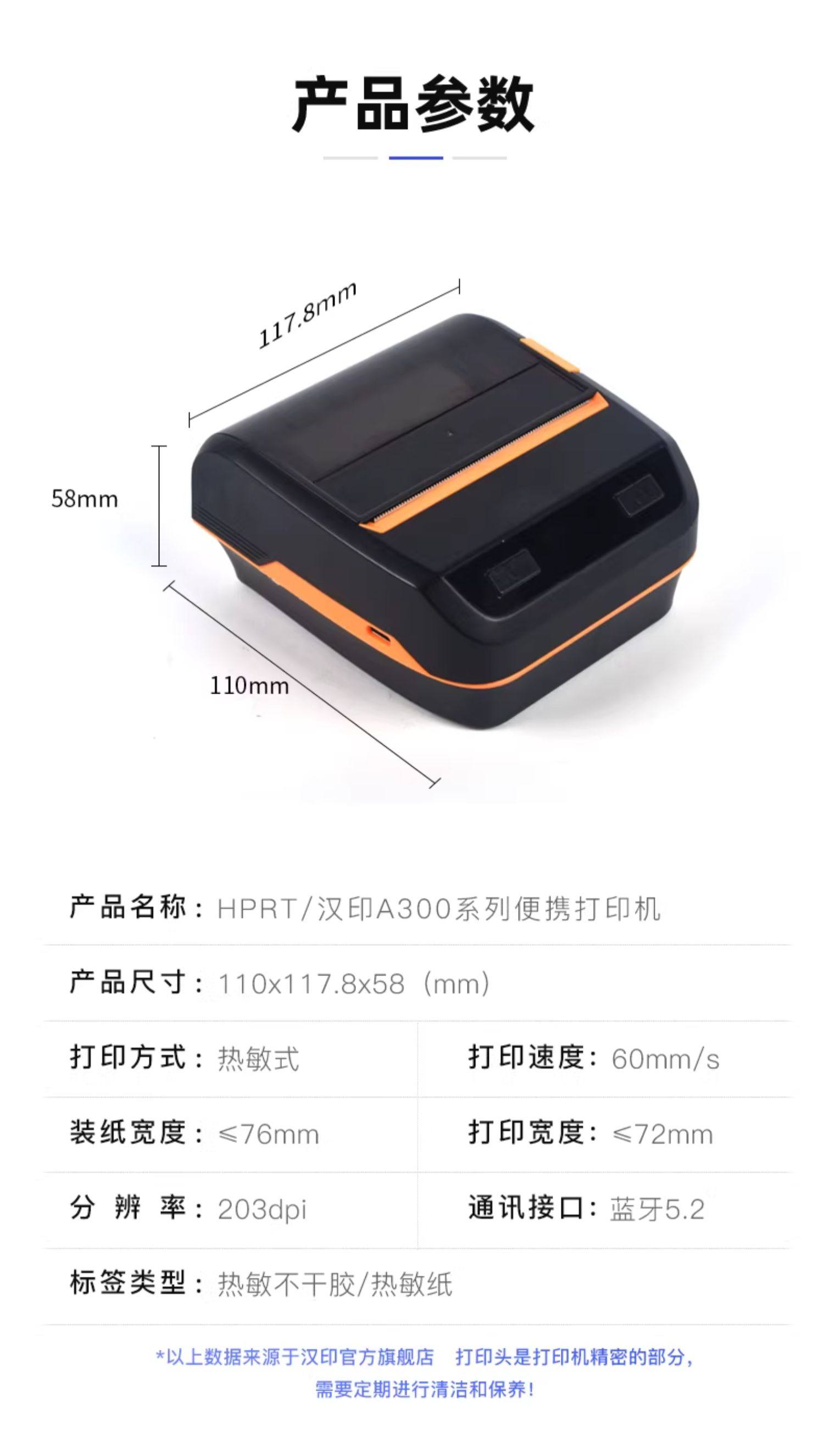 Hanyin A300E Brand Mobile Phone Bluetooth Express Receipt Printer, Station Label Printer, Thermal Portable Electronic Waybill Handheld Printer, Universal Version for Yto and Zto Couriers