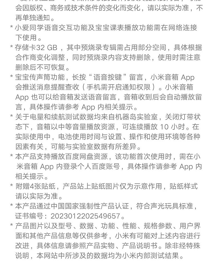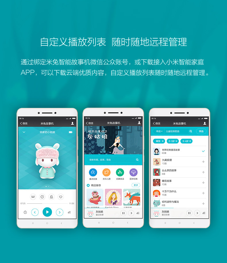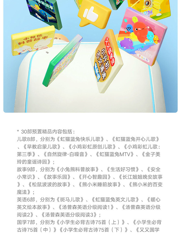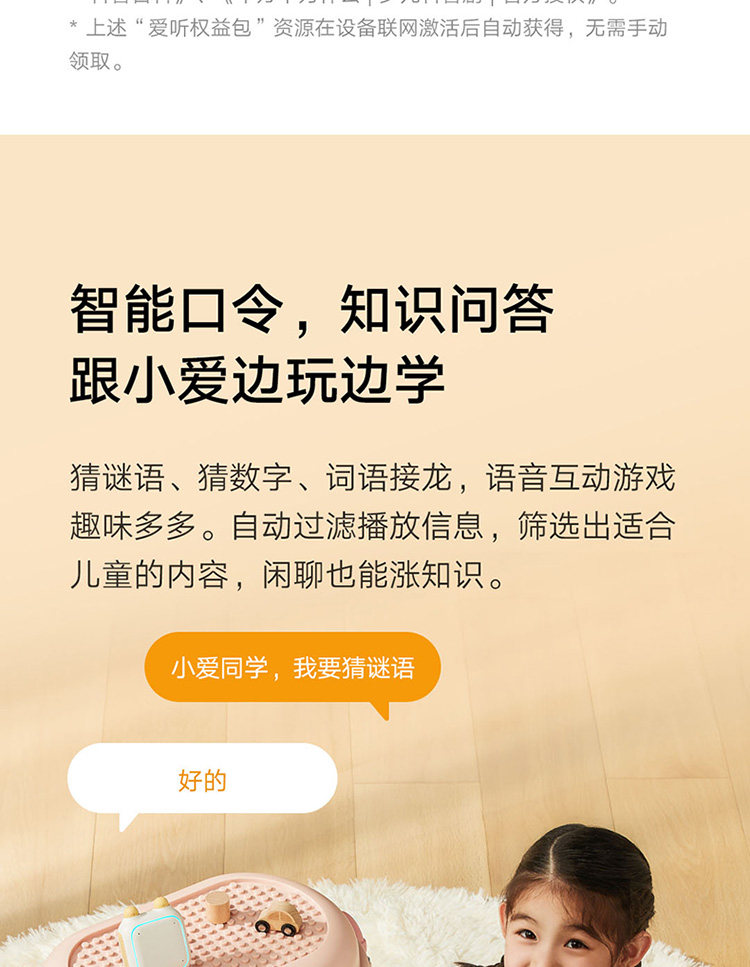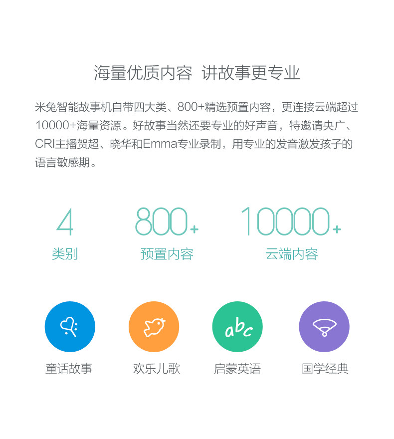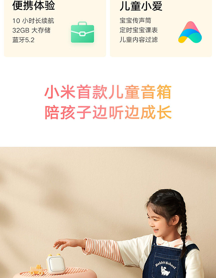 | Color Classification | Mi Rabbit Story Machine,Mi Rabbit Story Machine + Hugable Clothes,Mi Rabbit Story Machine + 10 Giant Writing Pens,Mi Rabbit Story Machine + 5 Colorful Pens,Mi Rabbit Story Machine + 10 Press Pens,Mi Rabbit Story Machine Package,Xiaomi Xiaoai Smart Speaker - Kids Edition,Xiaomi Xiaoai Speaker Kids Edition + Portable Protective Case |