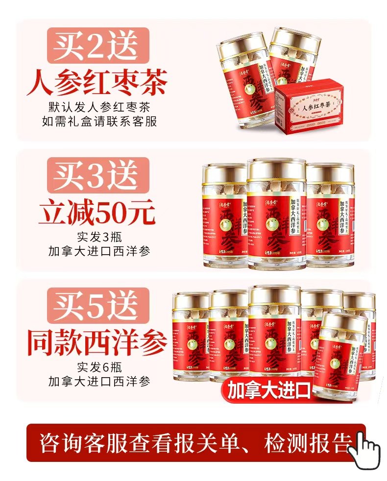 | Package Type | ăHot Seller - 6-Year Oldă2-3Cm Premium Canadian American Ginseng â Long-Lasting and Highly Infusible,[Highly Recommended by Returning Customers] 1.2-1.4cm Canadian 5-Year-Old Ginseng, 100 Grams,[High Concentration Saponin] 1.4-1.6cm Canadian 5-Year-Old Ginseng 100g,ăPremium Gradeă2.5-3Cm Canadian 6-Year-Old Ginseng â Warm Nourishment & Tonic,[High Cost Performance] 1.2cm 5-Year-Old Ginseng 0.5kg Pack 500g,[Preferred for Stocking up] 2cm 6-Year-Old Ginseng 0.5kg Pack 500g,ăPremium Wellness Giftă1.2Cm Canadian 5-Year-Old Ginseng 200g Gift Box,[Nourishing Gift Box for Elders] 2cm Canadian 6-Year-Old Ginseng 200g Gift Box,ăFour Treasures Nourishing Gift SetăA Healthy and Thoughtful Gift for Visiting Relatives,ăFive Blessings Platter Healthy Gift BoxăGift the Gift of Health and Wellness.,ăSix Treasures Plated Light Luxury Gift Boxă a Luxurious and Nourishing Gift Set for Healthy Living â Impress with Style.,Chinese Red-12 Cans [6-Year-Old Ginseng Gift Box (2cm Super Large Piece)] |