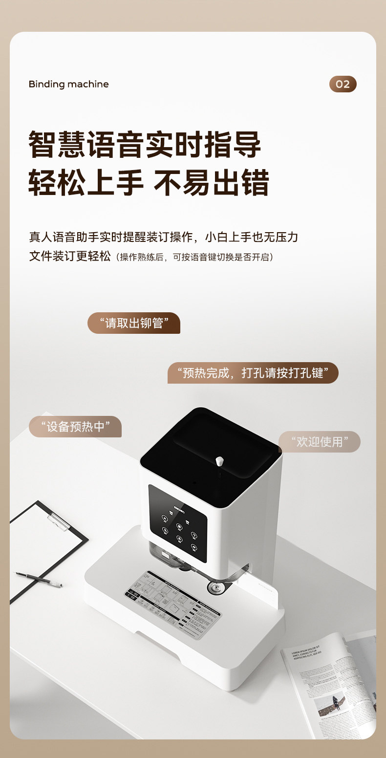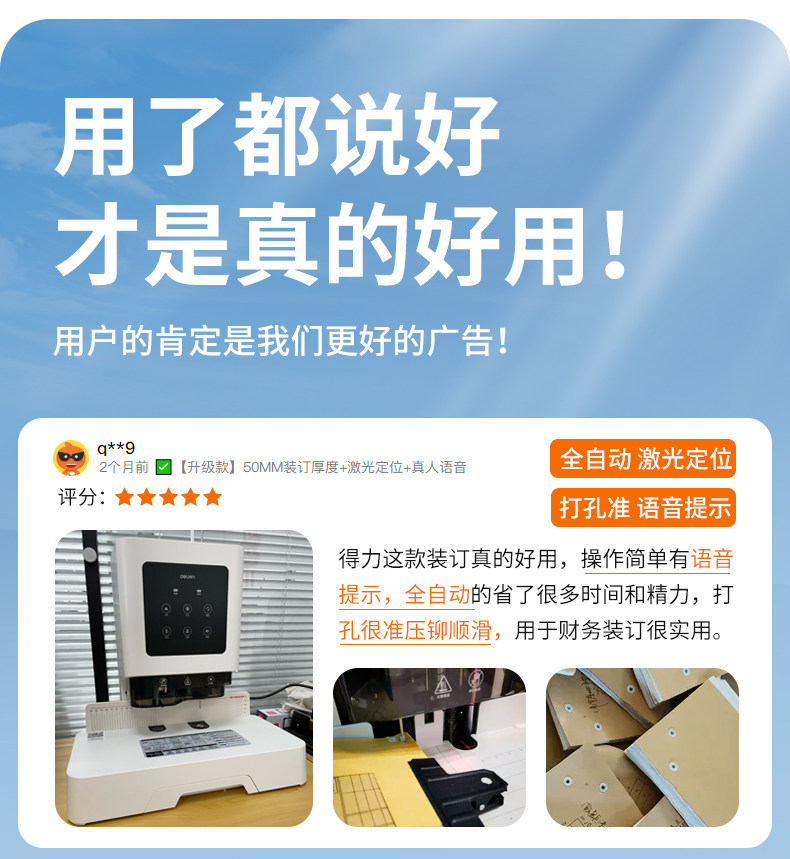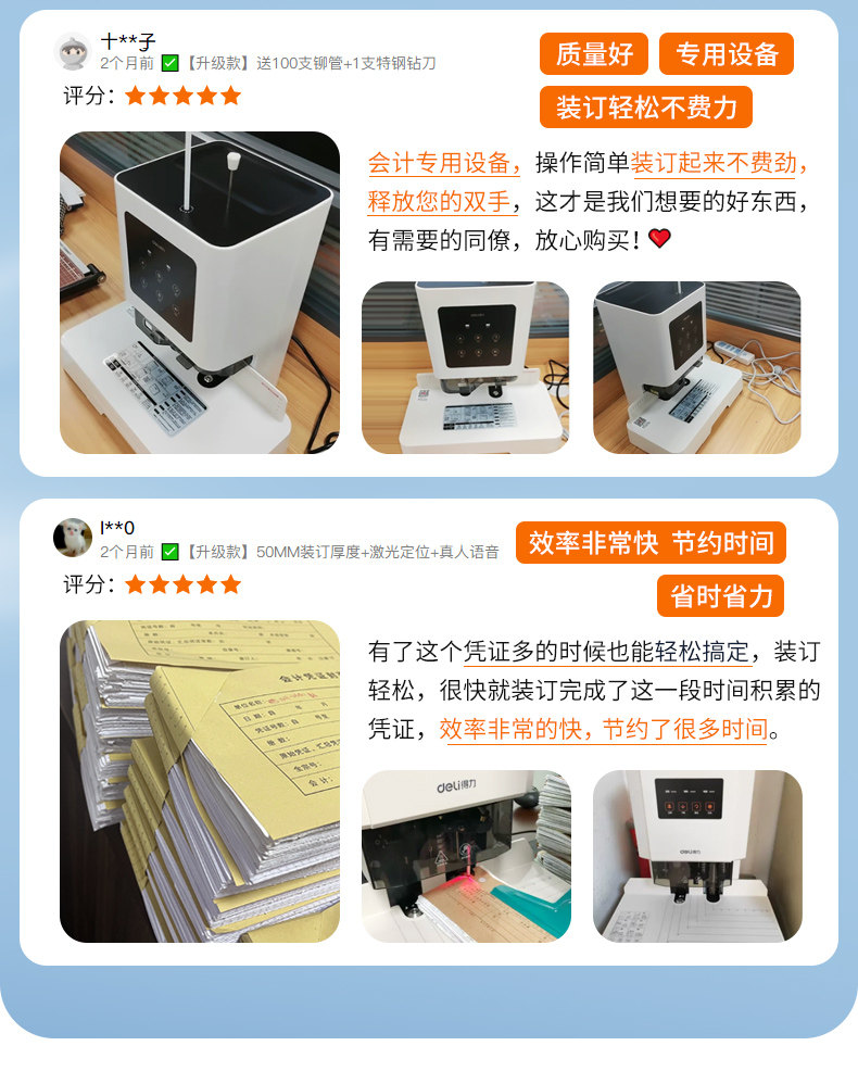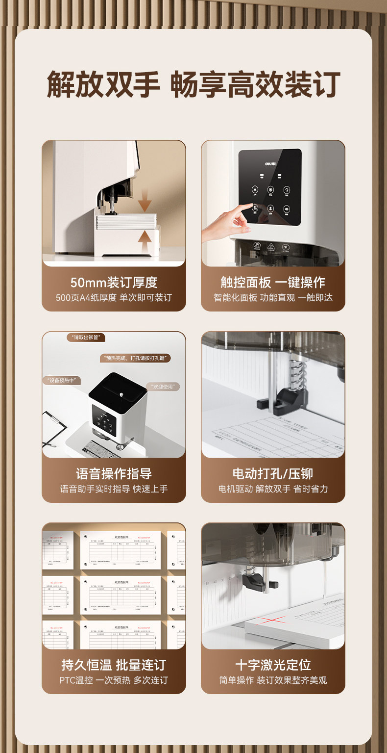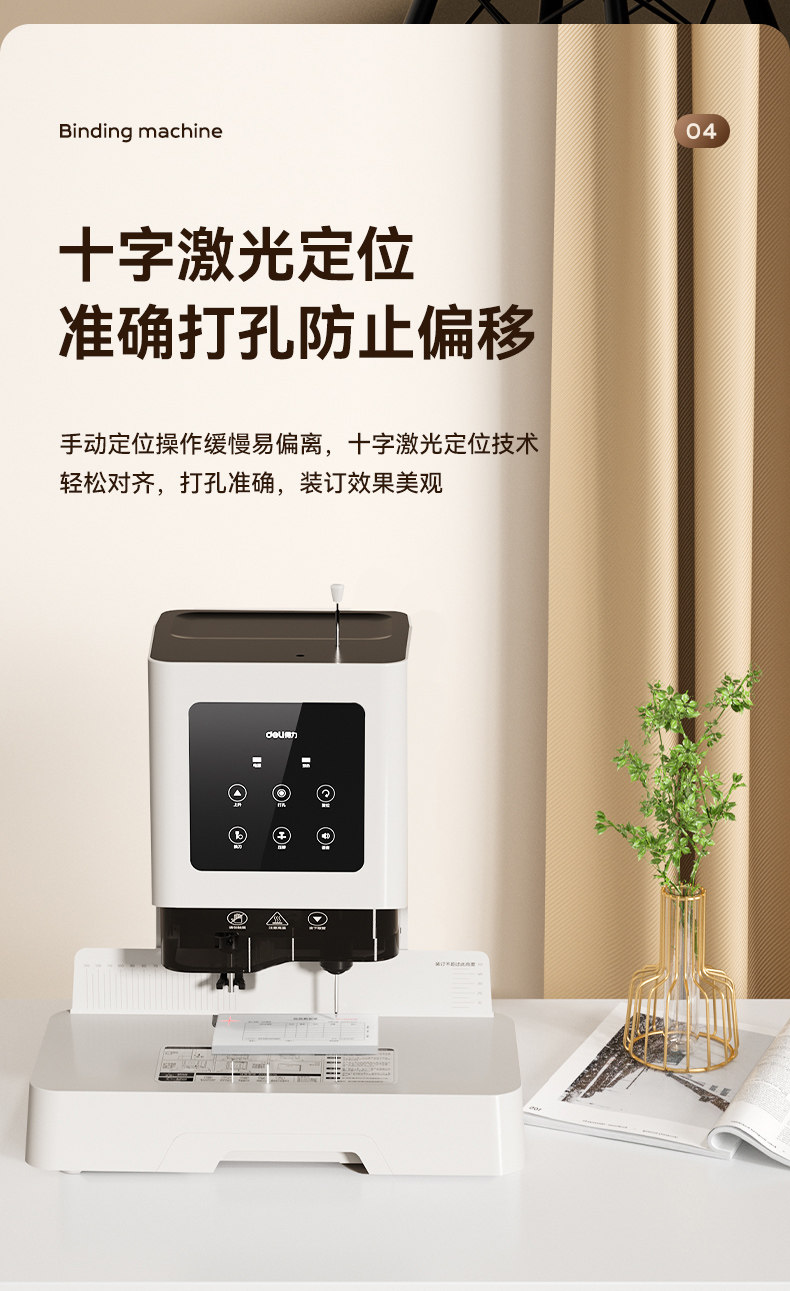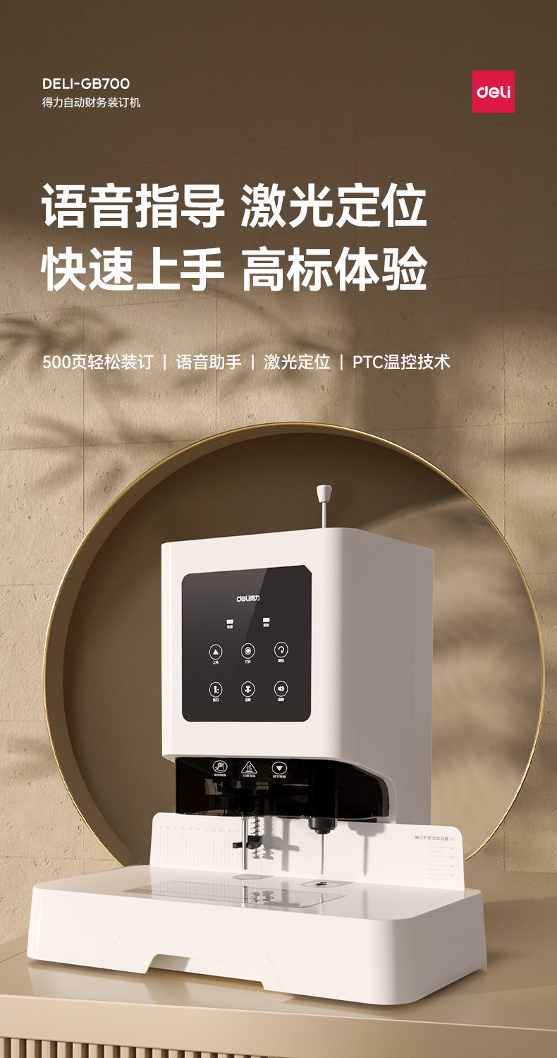 Deli Financial Specialized Binding Machine 14601 Laser Intelligent Fully Automatic Office Accounting Document Hot-Melt Riveting Binding Machine Small Tube Binding Machine Invoice Manual Electric Punching Machine