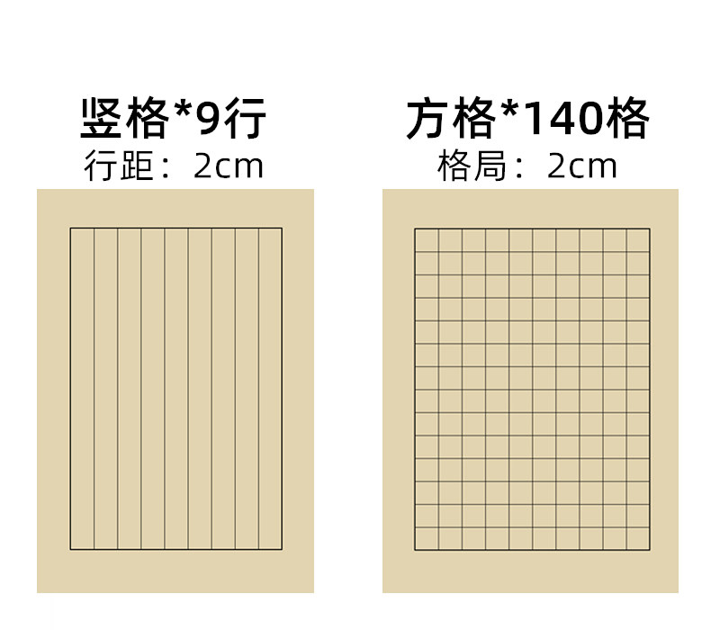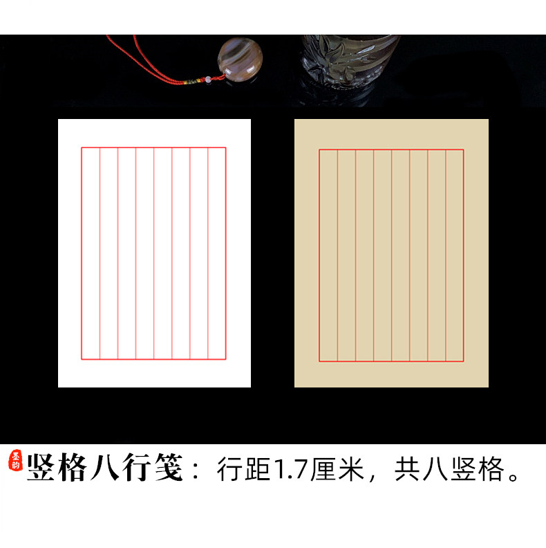 Calligraphy Practice Paper for Beginners, Semi-Raw Rice Paper for Writing Small Regular Script, Antique-Style Half-Raw Rice Paper for Calligraphy, Vertical Grid Eight-Line Square Grid Paper