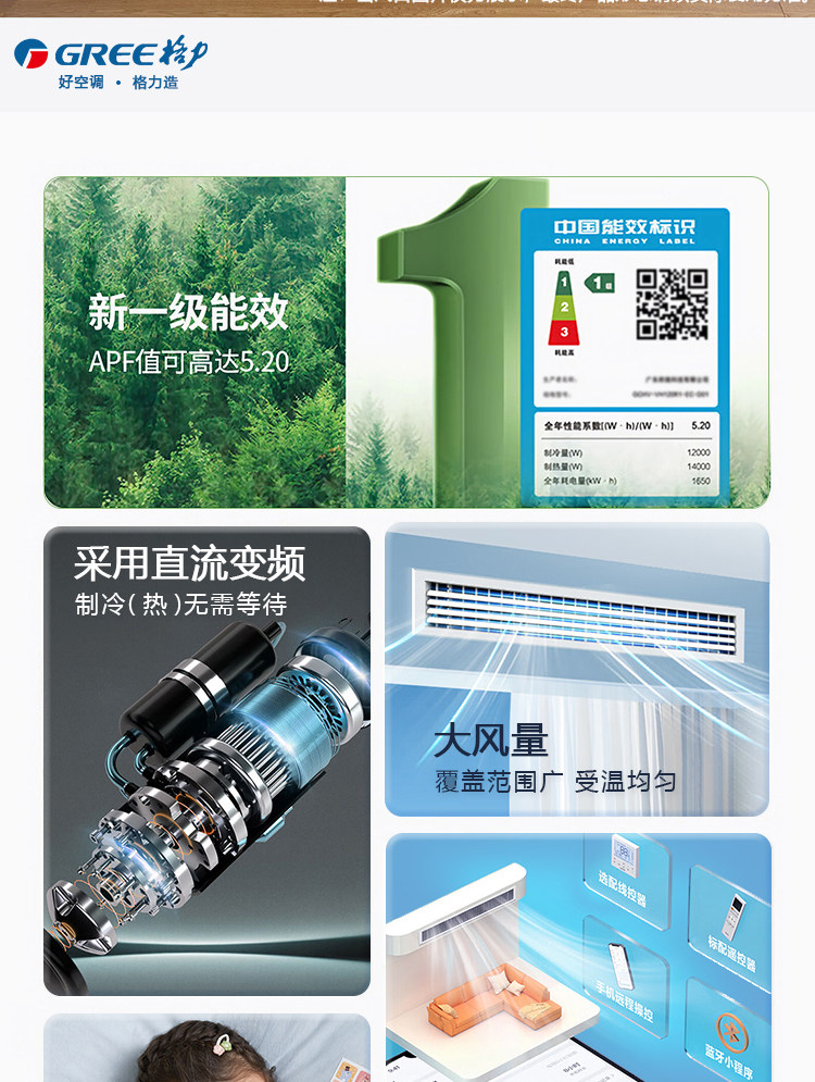 Gree Central Air Conditioner Star 3 Generation for Home Use, 5 Hp, One Unit for Four Rooms, Multi-Split, Full Dc Inverter, Suitable for Shops and Villas