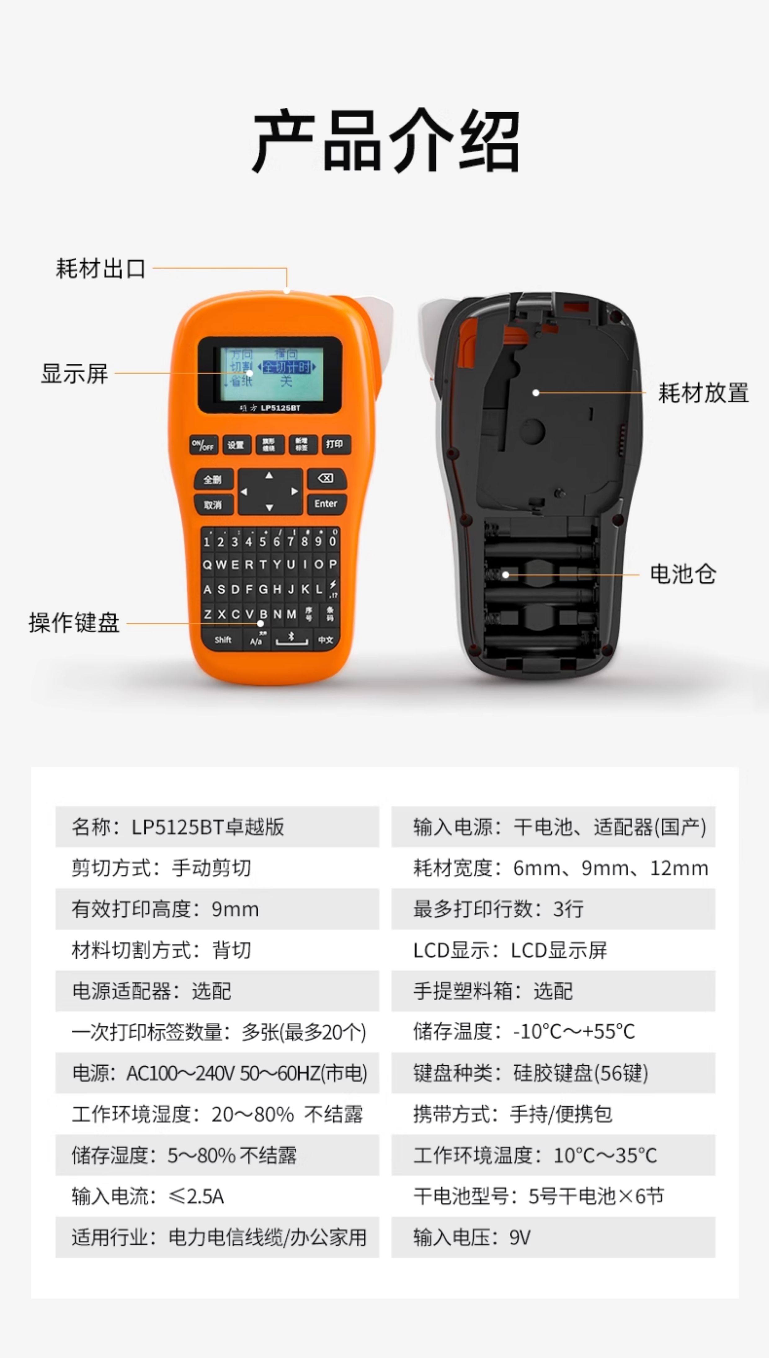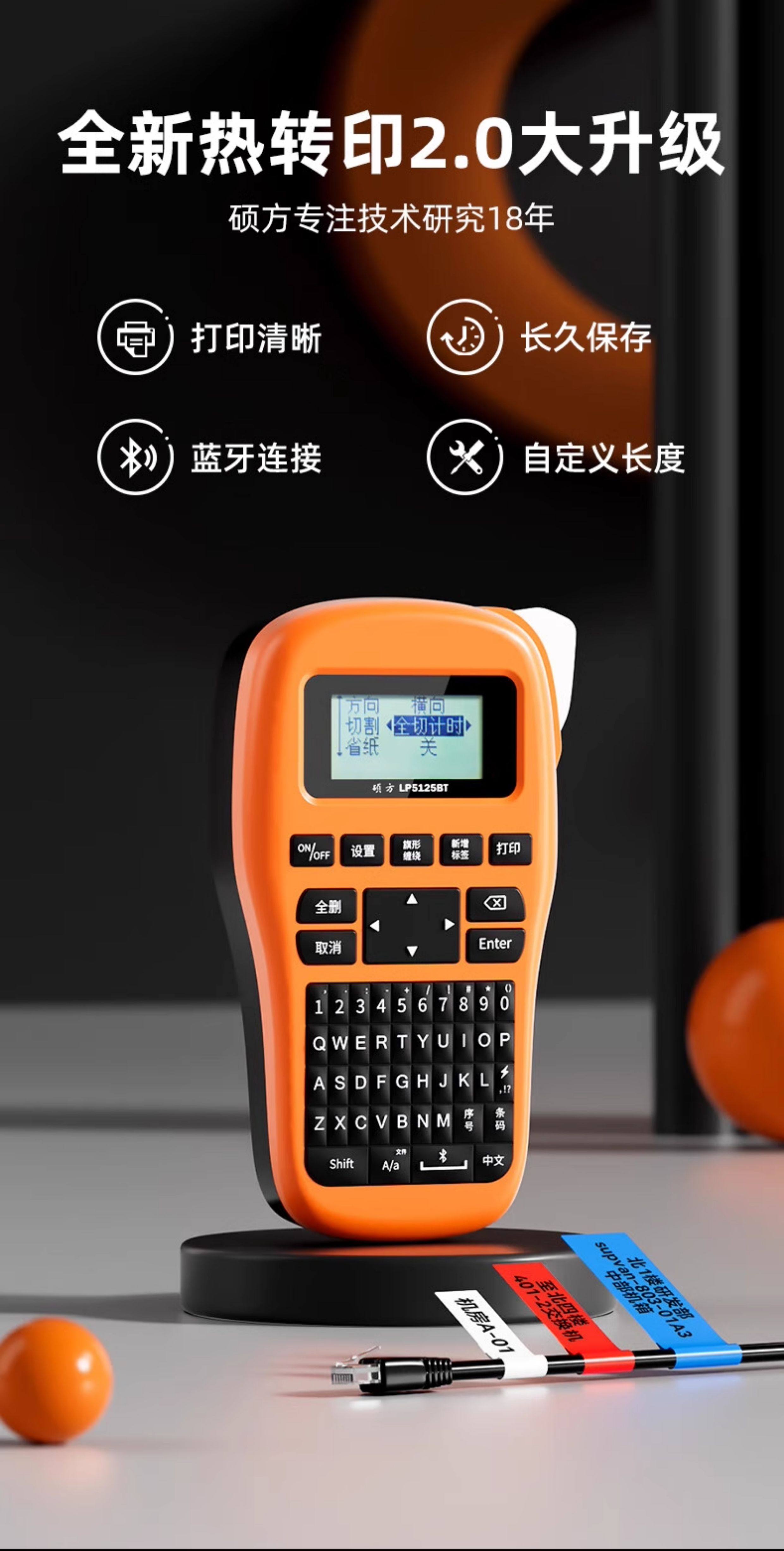 Shuofang Lp5125Bt Thermal Transfer Handheld Communication Cable Label Printer Small Marking Machine Portable Bluetooth Coding Machine Engineering Network Cable Distribution Box Laminated Sticker Commercial Label Machine