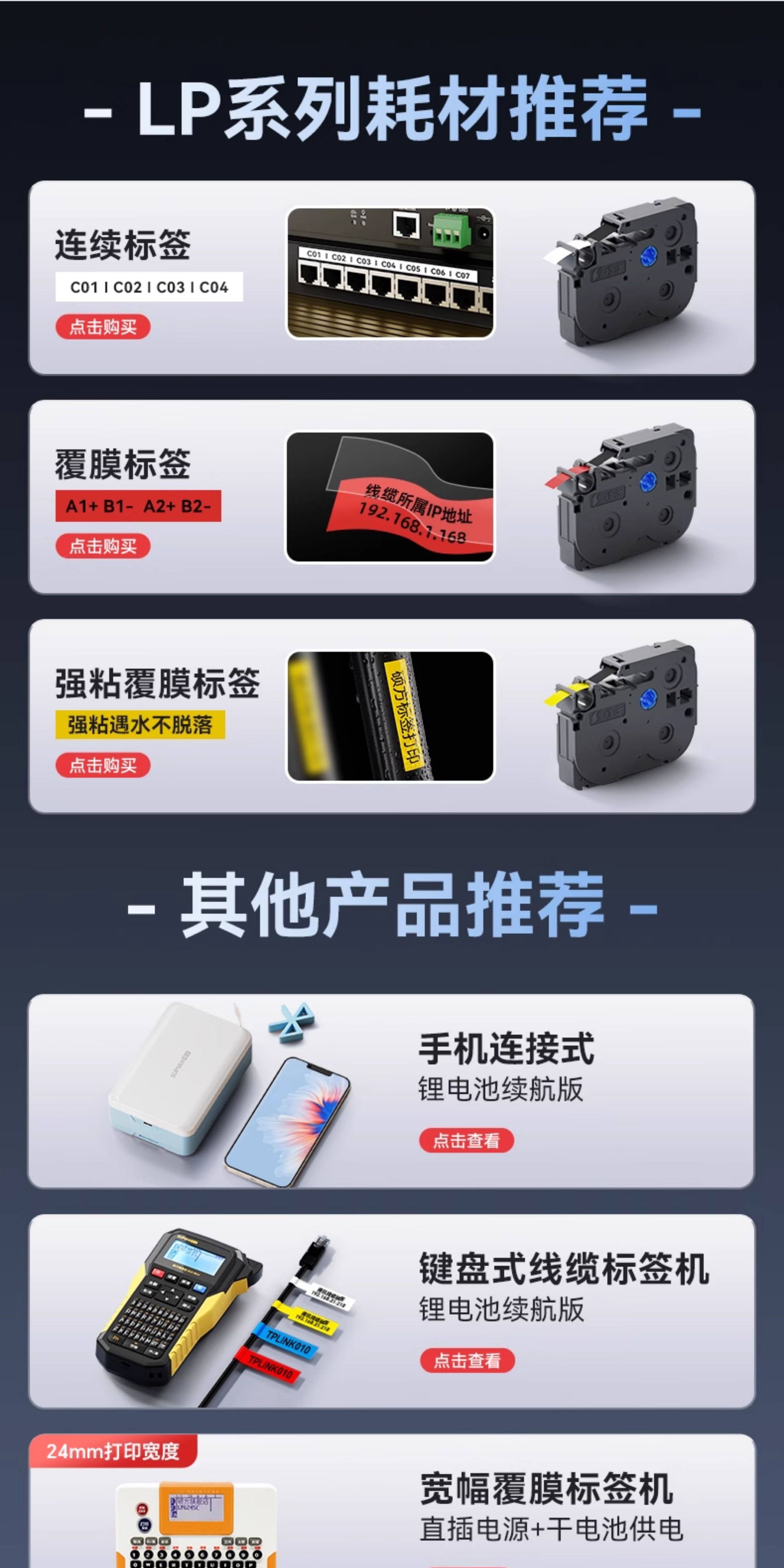 | Color Classification | [Mobile Editing + Manual Full Cut]G18 Standard Configuration + Trial Belt + Invoice,[Stand-Alone Version]Free Power Supply + Trial Tape + Special Ticket,[Charging Bluetooth Version]G15Mini+Lithium Battery+Trial Belt+Special Ticket,[Bluetooth Version]Free Power Supply + Trial Tape + Special Ticket,Lp6245C Computer/Stand-Alone Version[Supports 6-24mm Width Laminated Labels/Automatic Full Cutting],[Stand-Alone Version]Free Power Supply+[5 Rolls of Continuous Labels]+Open Special Ticket,[Stand-Alone Version]Free Power Supply+[5 Reels of Laminated Labels]+Open Special Ticket,[G15Mini+5 Cable Label]Built-In Lithium Battery,[G15Mini+5 Trays of Continuous Labels]Built-In Lithium Battery,[G15Mini+5 Trays of Heat Shrinkable Tube]Built-In Lithium Battery,[G15Mini+5 Disk Identification Plate]Built-In Lithium Battery,[Bluetooth Version]Free Power Supply+[5 Rolls of Continuous Labels]+Open Special Ticket,[Bluetooth Version]Free Power Supply+[5 Reels of Laminated Labels]+Open Special Ticket,[Bluetooth Version]Free Power Supply+[10 Rolls of Continuous Labels]+Open Special Ticket,[Bluetooth Version]Free Power Supply+[10 Trays of Laminated Labels]+Open Special Ticket,[Black Bluetooth Version]Free Power Supply + Trial Tape + Special Ticket,[Black Bluetooth Version]Free Power Supply+[5 Rolls of Continuous Labels]+Open Special Ticket,[Black Bluetooth Version]Free Power Supply+[5 Reels of Laminated Labels]+Open Special Ticket,[Bluetooth Full Cut Version]Free Power Supply + Trial Tape + Special Ticket,[Bluetooth Full Cut Version + 5 Continuous Labels]Free Power Supply + Invoicing,[Bluetooth Full-Cut Version + 5 Disk Laminated Labels]Free Power Supply + Invoicing,[G15Mini+5 Disk Gap Label]Built-In Lithium Battery,[Stand-Alone Version]Free Domestic Power Supply + Trial Tape + Special Ticket,[Mobile Editing + Manual Full Cut]G18 Standard Configuration + 3 Rolls of Continuous Labels + Invoicing,[Mobile Editing + Manual Full Cut]G18 Standard Configuration + 3 Spools of Cable Label + Invoice,[Mobile Editing + Manual Full Cut]G18 Standard Package + 3 Rolls of Heat Shrink Tubing + Invoice,[Mobile Editing + Manual Full Cut]G18 Standard Configuration + 3 Label Plates + Invoicing,[Mobile Editing + Manual Full Cut]G18 Comes Standard with +3 Disk Gap Labels + Invoicing,[Bluetooth Long Battery Life + Manual Full Cut]G15+Lithium Battery+Trial Belt+Invoicing,[Bluetooth Long Battery Life + Automatic Full Cut]G15Pro+ Lithium Battery + Trial Belt + Invoicing,G15 Max Stand-Alone,G15 Max+5 Rolls of Continuous Labels |
