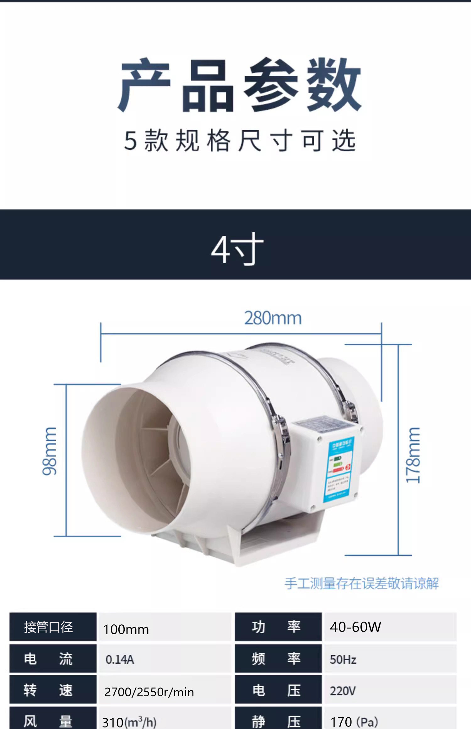 Turbo Ventilation Fan Bathroom Exhaust Fan 4inch Duct Fan Bathroom Toilet Household Powerful Duct Ventilation