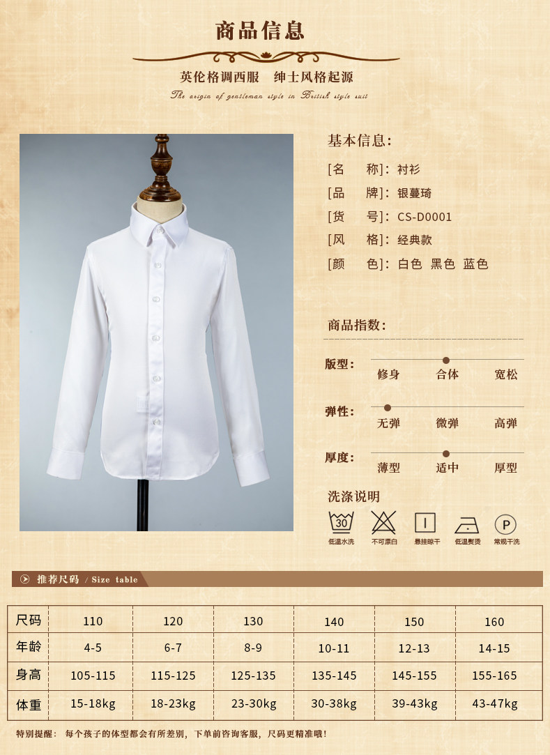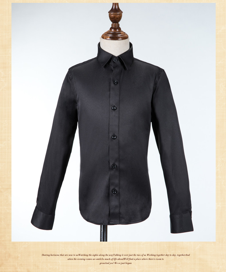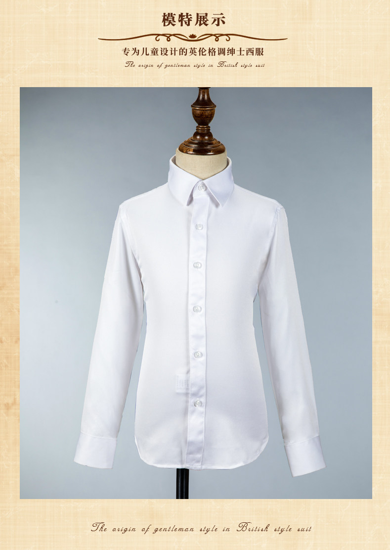 Boys' Formal Shirt Long Sleeve 2025 New Children's White Shirt for Older Kids, Black Performance Outfit Matching