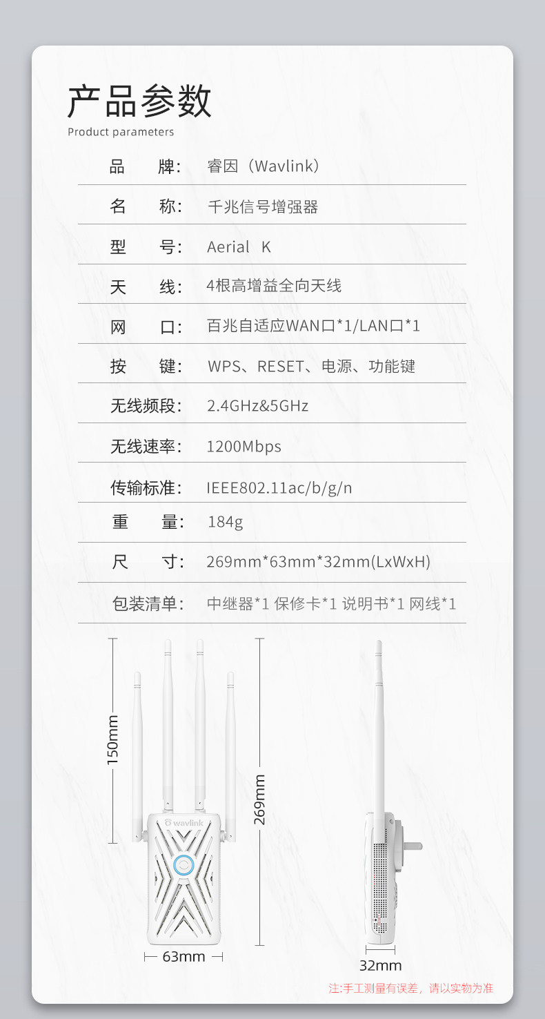 [Gigabit Enhanced Edition]Ruiyin Wifi Signal Extender 1200m Dual-Band 5g Signal Booster Amplifier Router Home Gigabit Wireless Network High-Speed Network Expansion Bridge