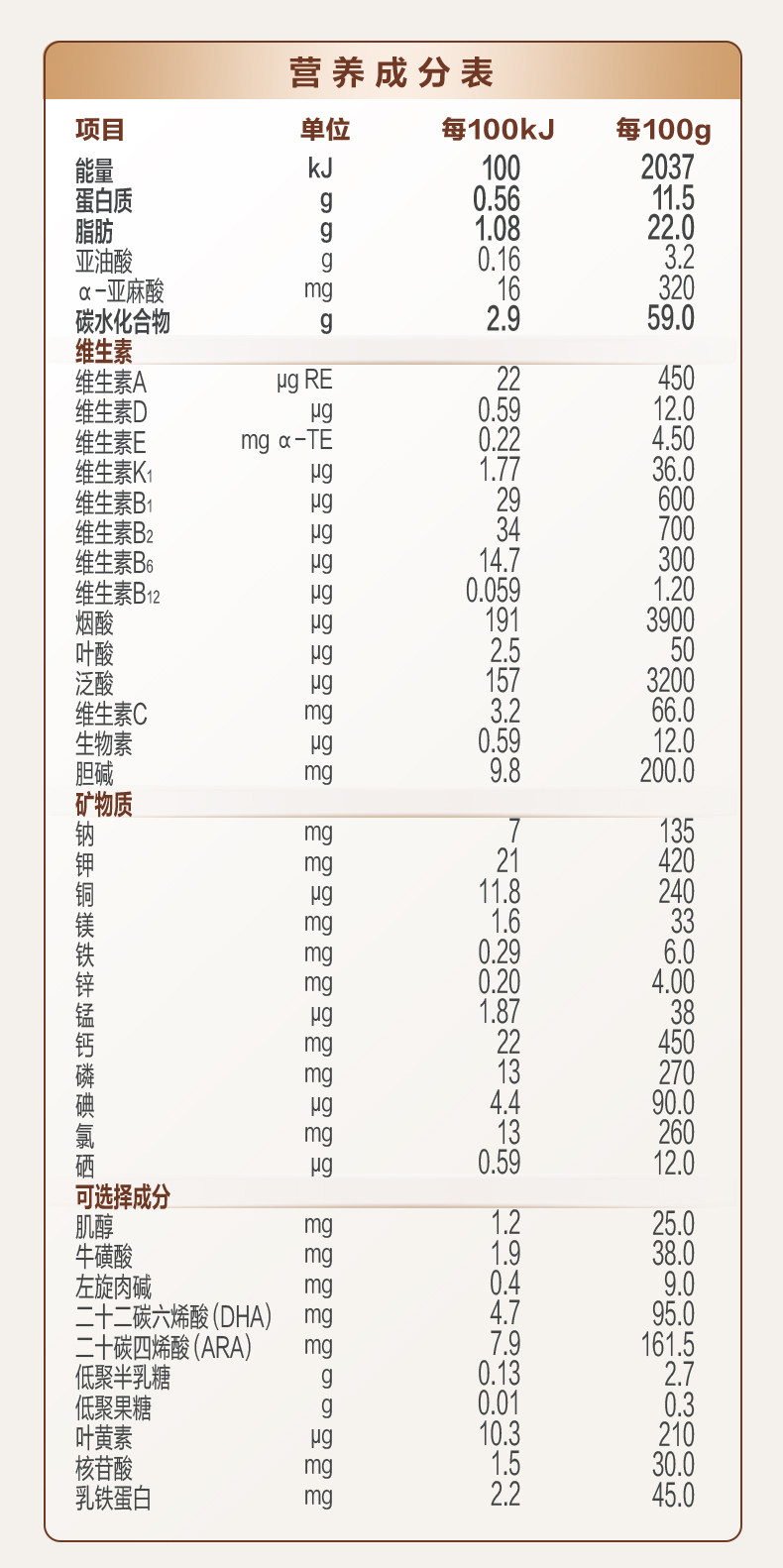 | Nutritional Elements | Lactose |