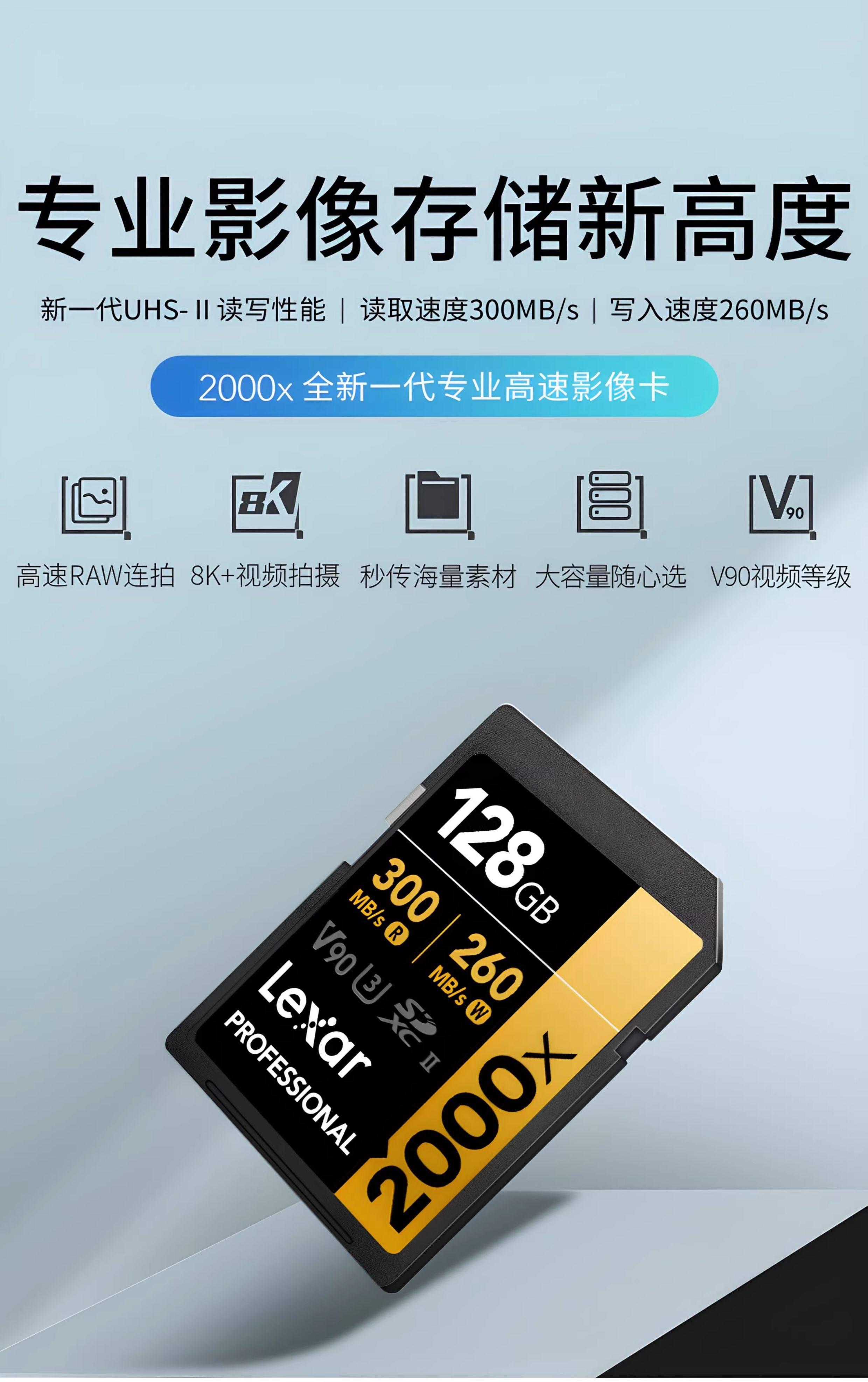 Lexar Sd Card 128g Memory Card V90 High-Speed Sdxc Large Card Slr Digital Camera Memory Card 2000X
