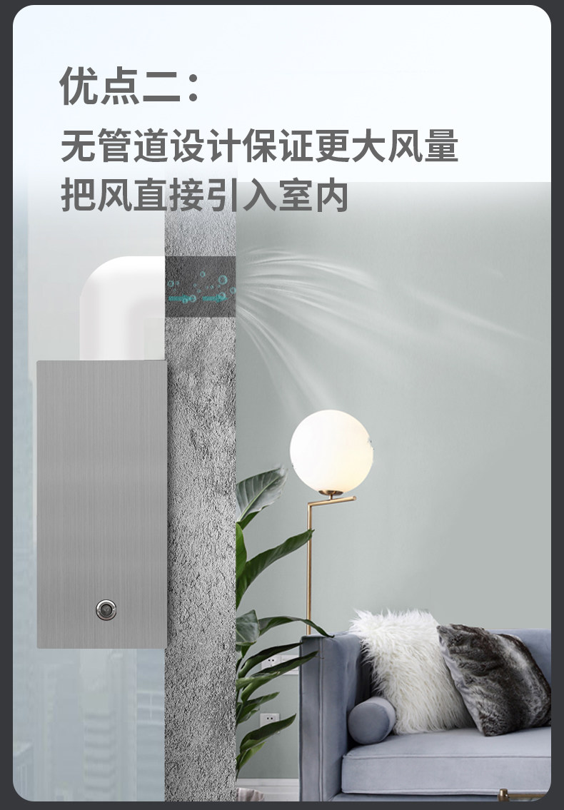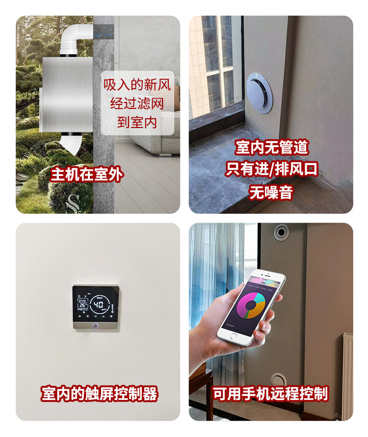 Outdoor Fresh Air Fan, Ductless Fresh Air System, Household Wall-Mounted Positive Pressure Two-Way Flow Full Heat Exchange, Formaldehyde Removal