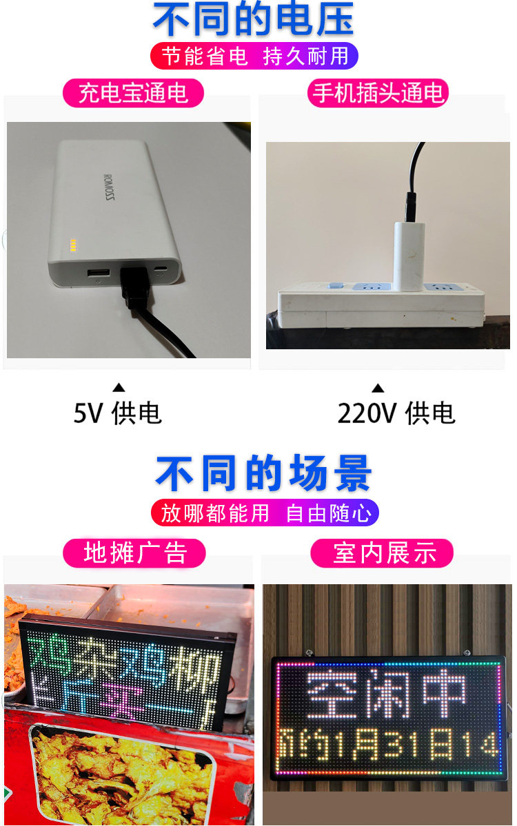 Street Vendor Led Display Screen Billboard, Mobile Phone Editable Text, USB Power Bank, Ultra-Thin Scrolling Text, Small Electronic Screen