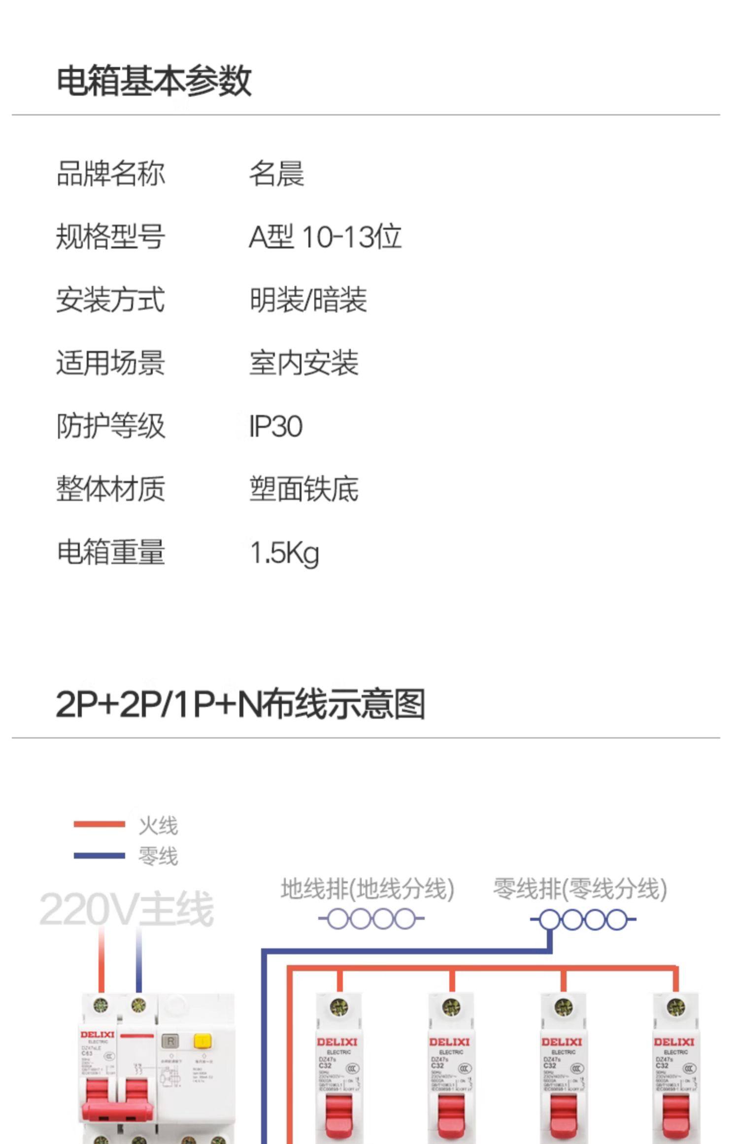 Concealed 13-Position Distribution Box Set Suitable for Delixi with Leakage Protection Circuit Breaker, Complete Set of 1P Strong Current Box