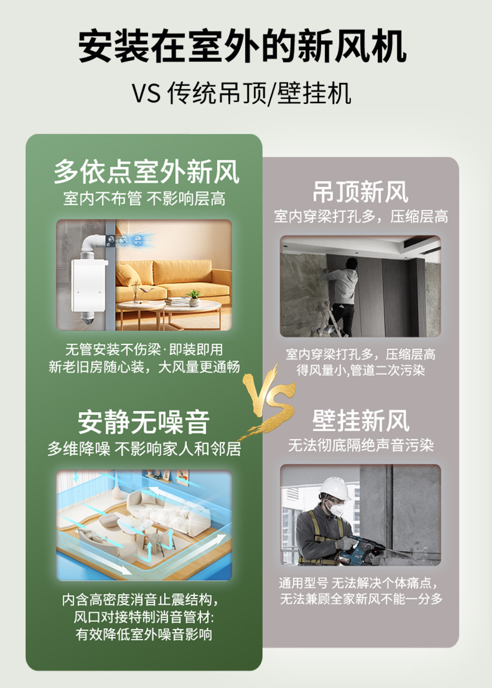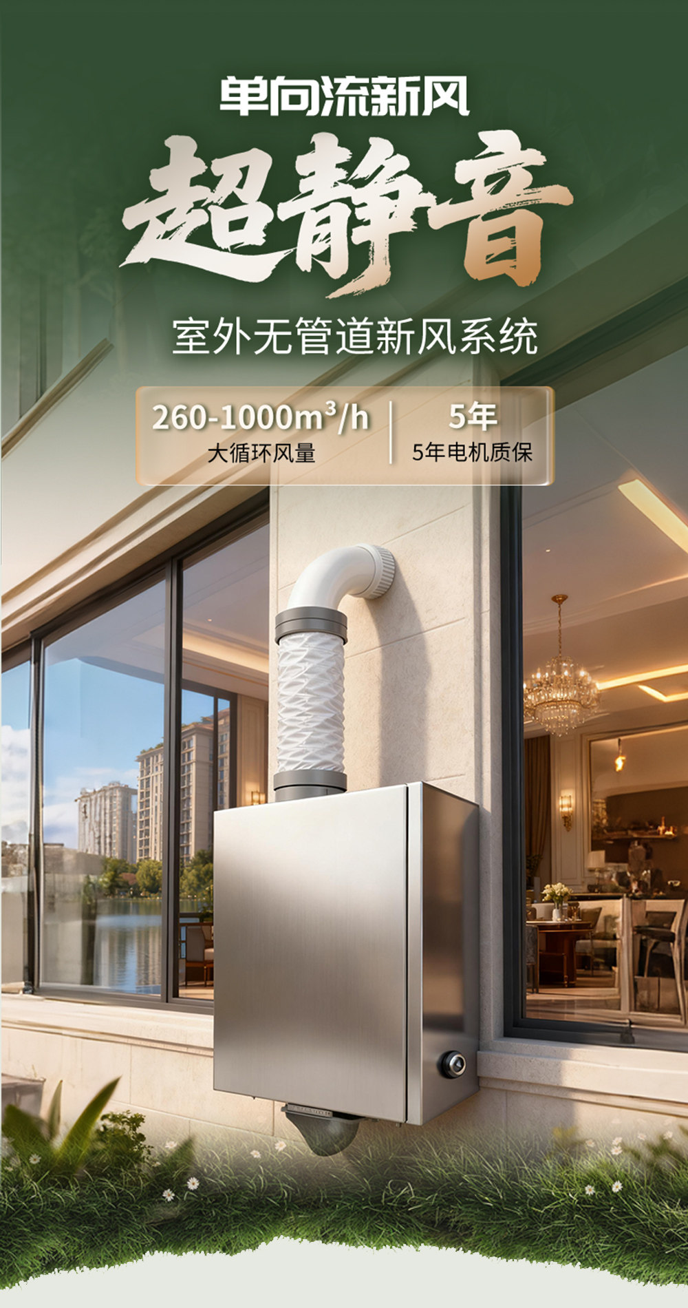 One-Way Flow Fresh Air Series, Outdoor Installation, Micro-Positive Pressure, Formaldehyde Removal, Pm2.5, Silent Multi-Point Fresh Air System