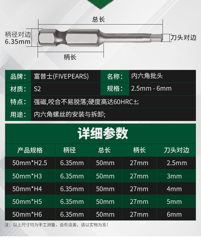 Fupu Hexagonal Screwdriver Strong Magnetic Bit Set Pneumatic Electric Drill Single-Ended Bit Electric Screwdriver Bit