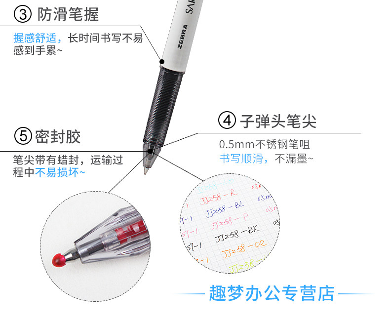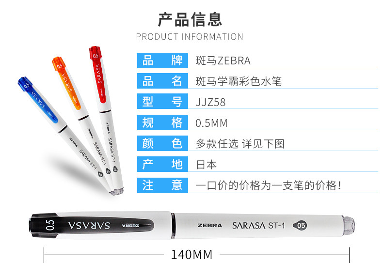 Japanese Zebra Sarasa Jj15 Cap-Off Gel Pen for Students, Large-Capacity Exam Pen, Jjz58 Office Signature Pen, Red, Blue, Black Water-Based Pen, Carbon Pen, 0.5mm