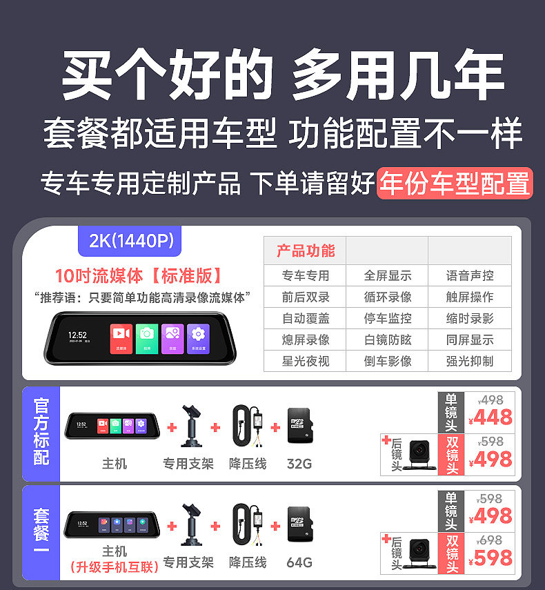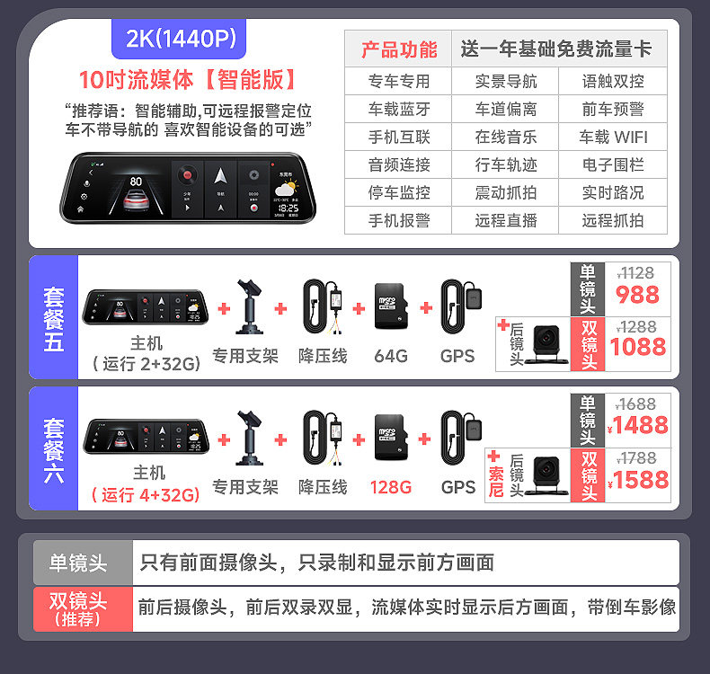 | Function | Enhanced Night Vision,Loop Recording,Speed Limit Sign Reminder,Reversing Image,Fatigue Driving Reminder,Forward Collision Warning,Night Vision Fill Light,Fixed Speed Measurement,Parking Monitoring,Short Video Sharing,Positioning,Motion Detection,Before and after Recording,Front Vehicle Distance Detection,Bluetooth,Tire Pressure Monitoring,Gps Navigation,Lane Change Assist,Pedestrian Collision Warning,Screen Deformation Correction,Gesture Shooting,Erase the Error Code,Turn on the Light Reminder,Flow Velocity Measurement,Track Deviation Warning,Front Car Starting Reminder,Collision Sensing |