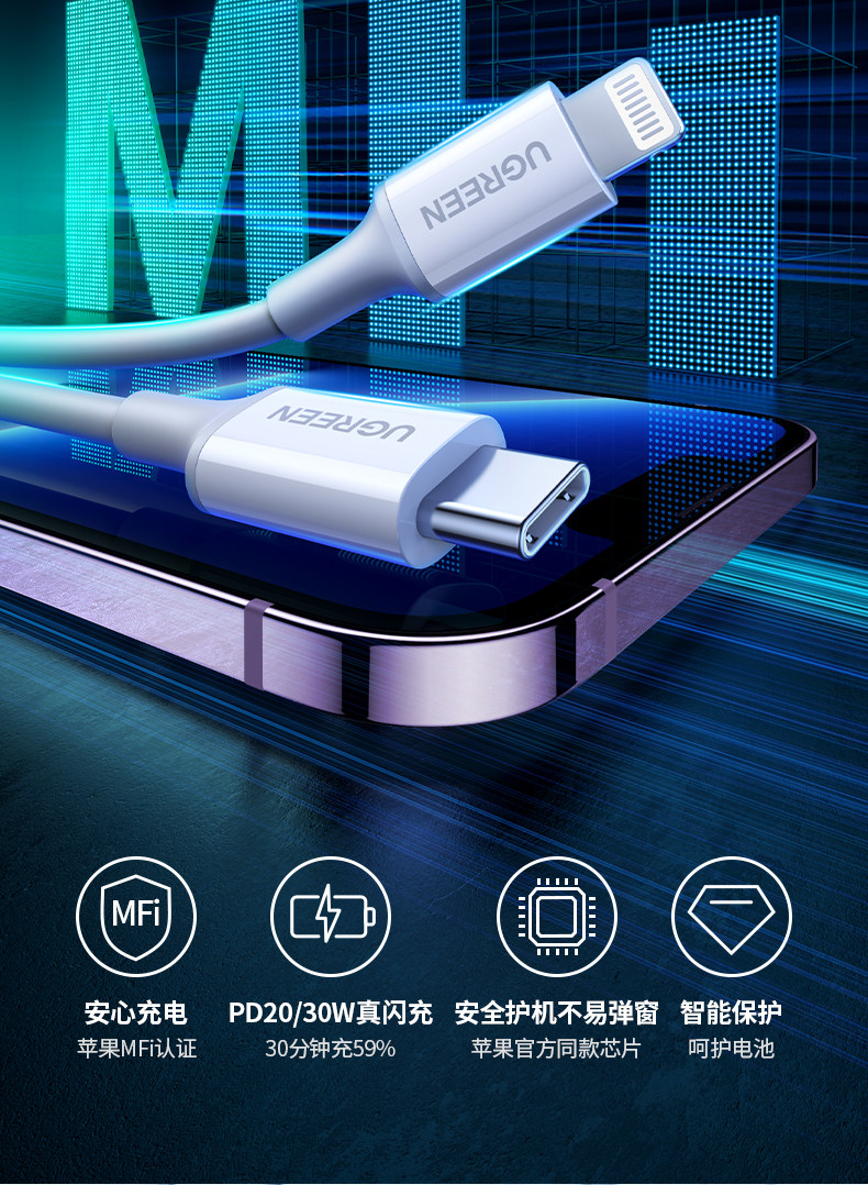 Green Alliance Compatible Apple 17 iPhone 16 Pro Max Charging Cable 15 Pd Fast Charge 14 Mfi Certified 12 Mobile Phone Data Cable 13 Tablet iPad 11 USB Car Charger Type-C to Lightning