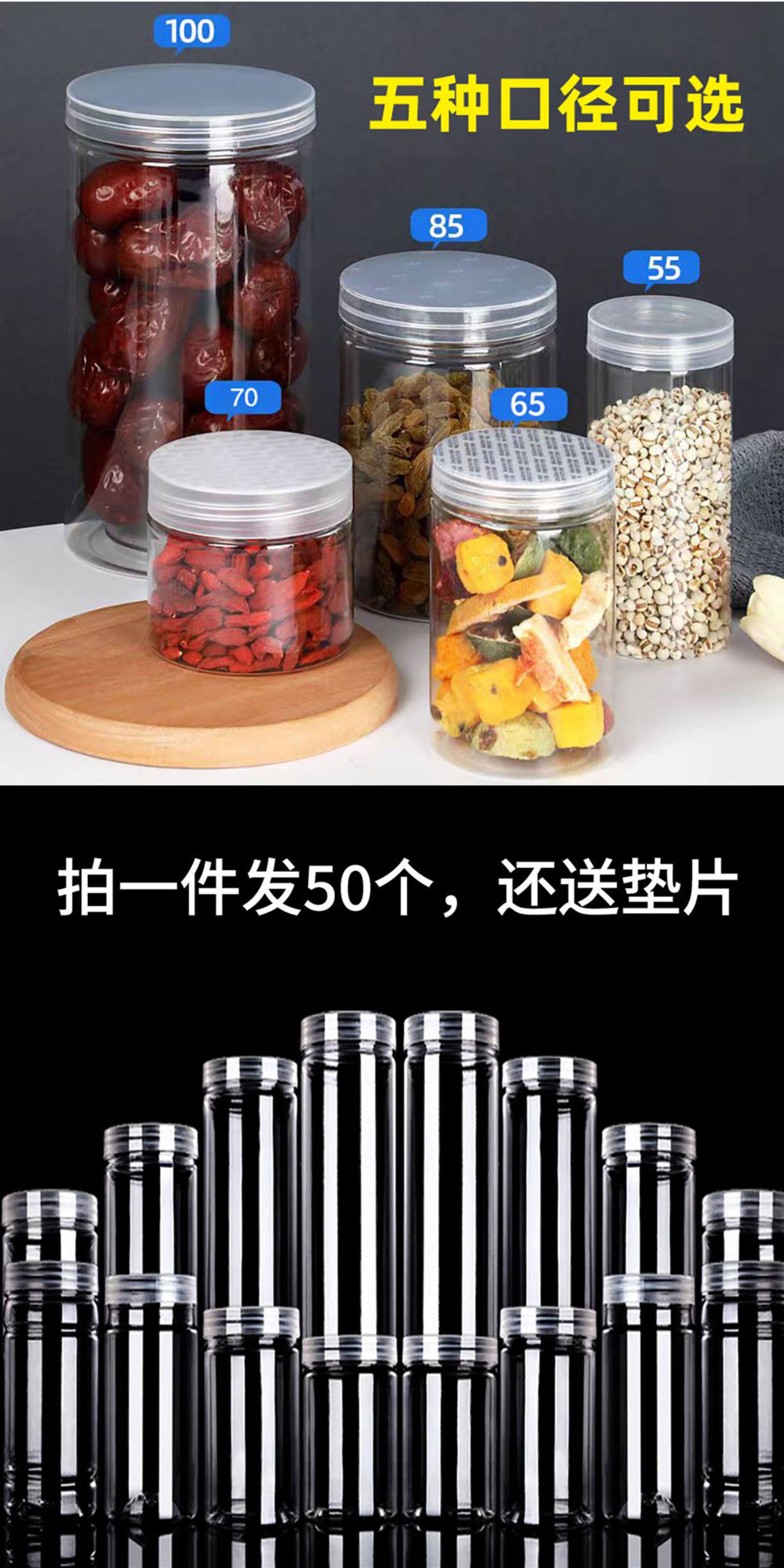 Food-Grade Plastic Bottles, Empty Bottles Wholesale, Pet Transparent Plastic Sealed Jars, Dry Goods and Snacks Packaging Storage Jars