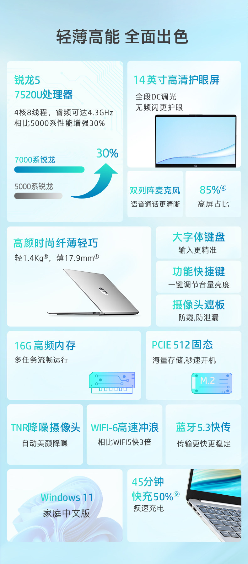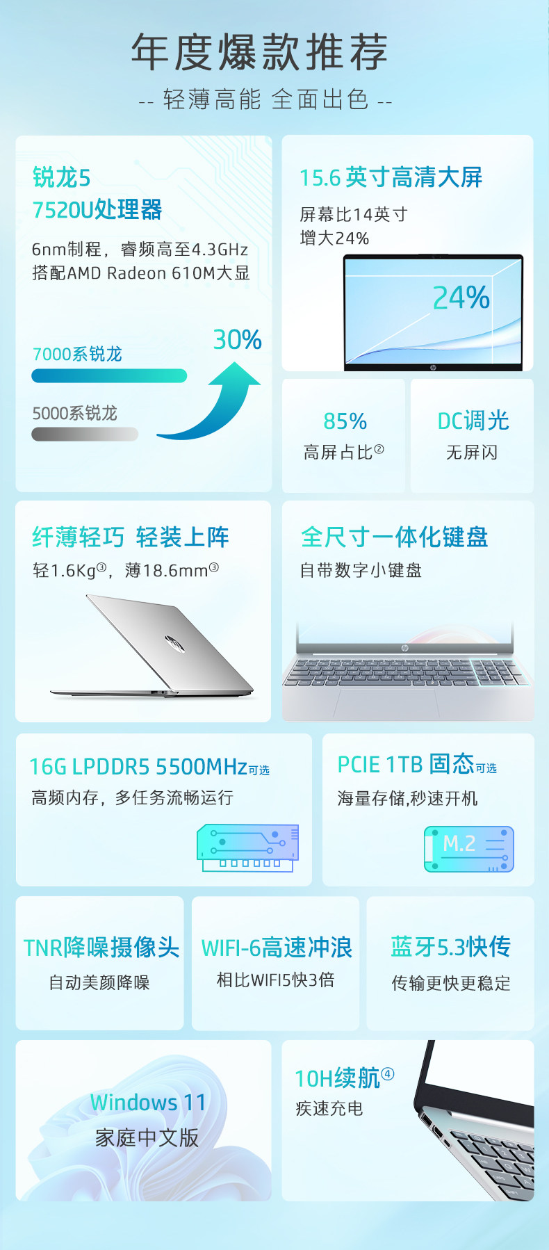 [Popular Lightweight Laptop] Hp/Hp Optional Starbook 14 Ryzen 5 7520U Processor Laptop for Students, Lightweight and Portable Office Laptop, Hp Official Flagship Store