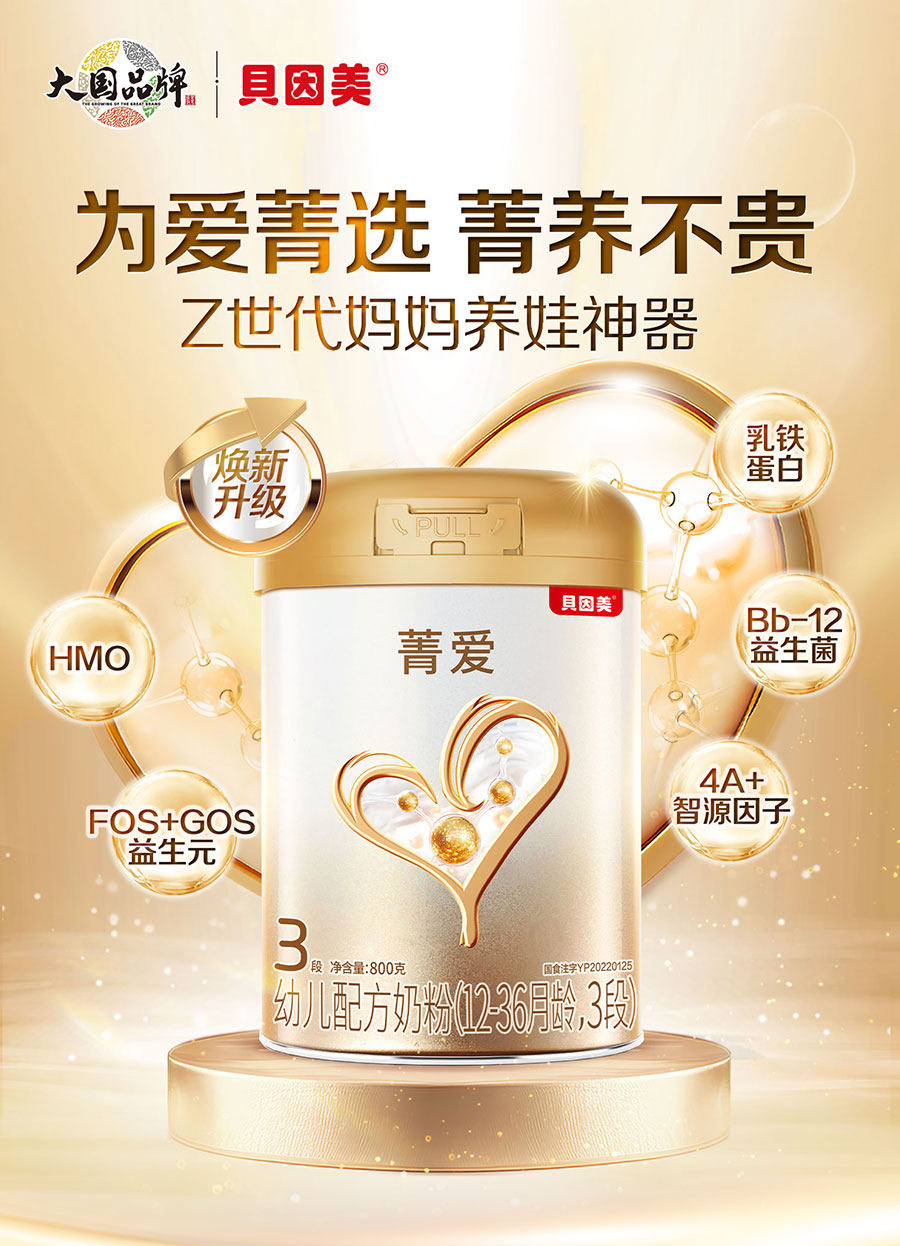[Renewal Upgrade] Beingmate Jingai 3-Stage Lactoferrin Hmos Milk Powder Dha for Toddlers 800g*2 Cans