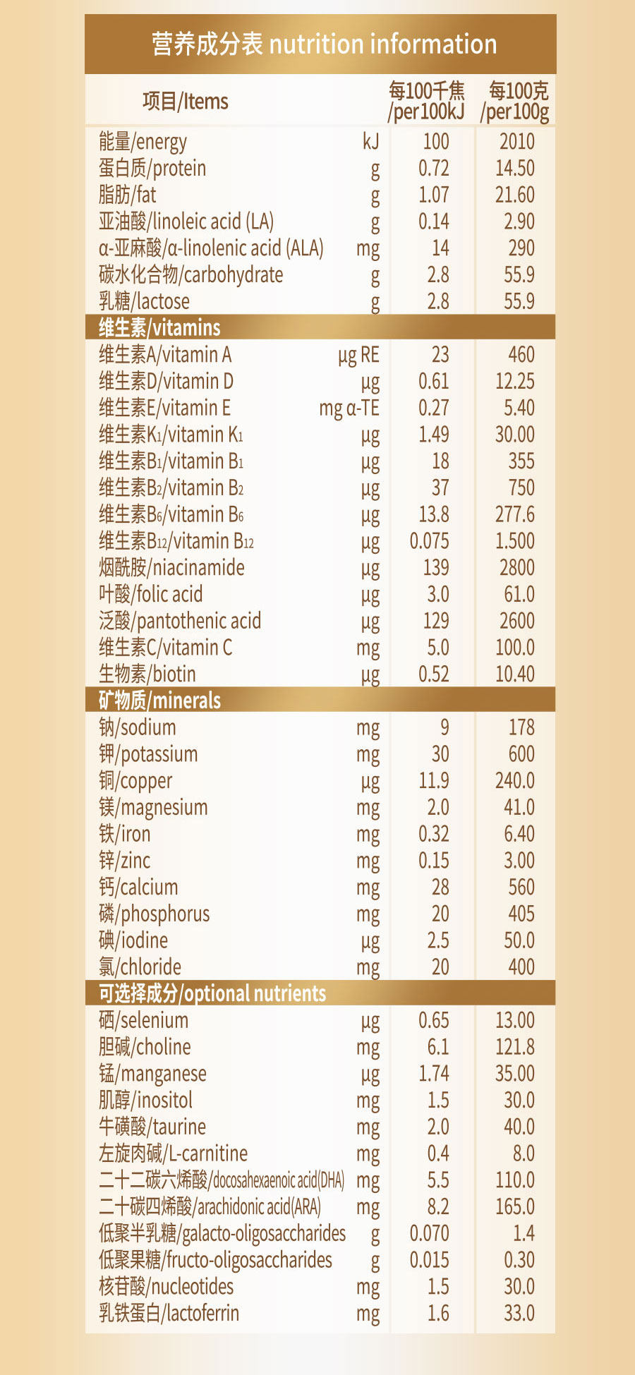 | Nutritional Elements | Lactoferrin |