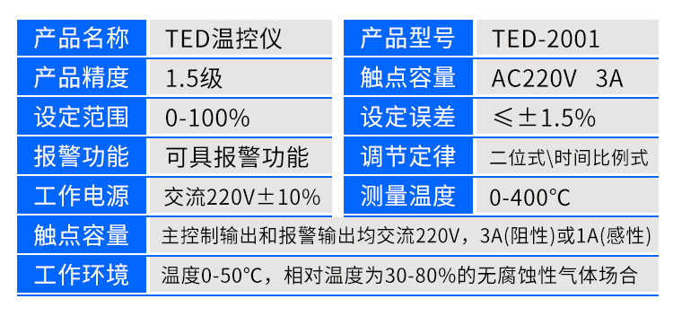 | Color Classification | TED-2001 E 0-300℃,TED-2001 E 0-400℃,TED-2001 K 0-300℃,TED-2001 K 0-400℃ |