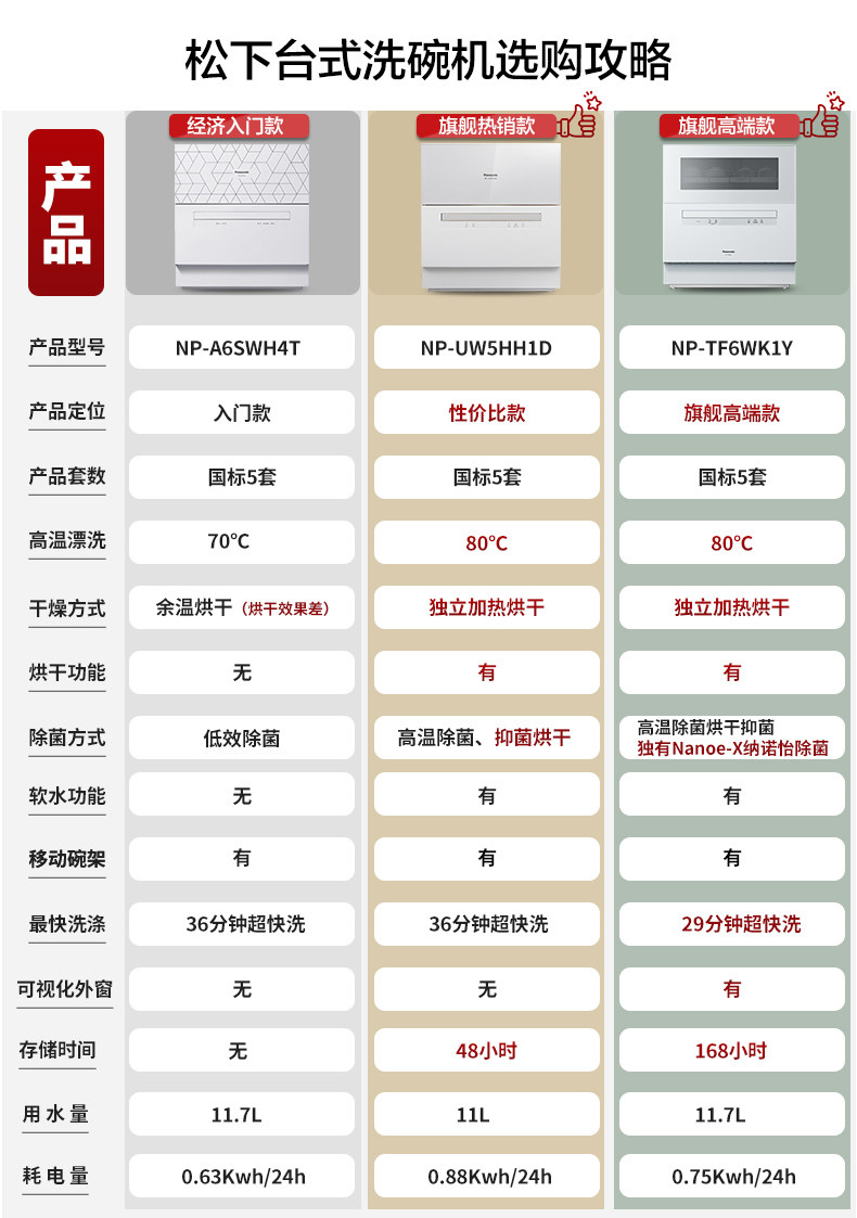 Panasonic Fully Automatic Household Countertop Dishwasher, No Installation Required, 5 Sets, Sterilization and Drying, Electric Dishwashing Machine
