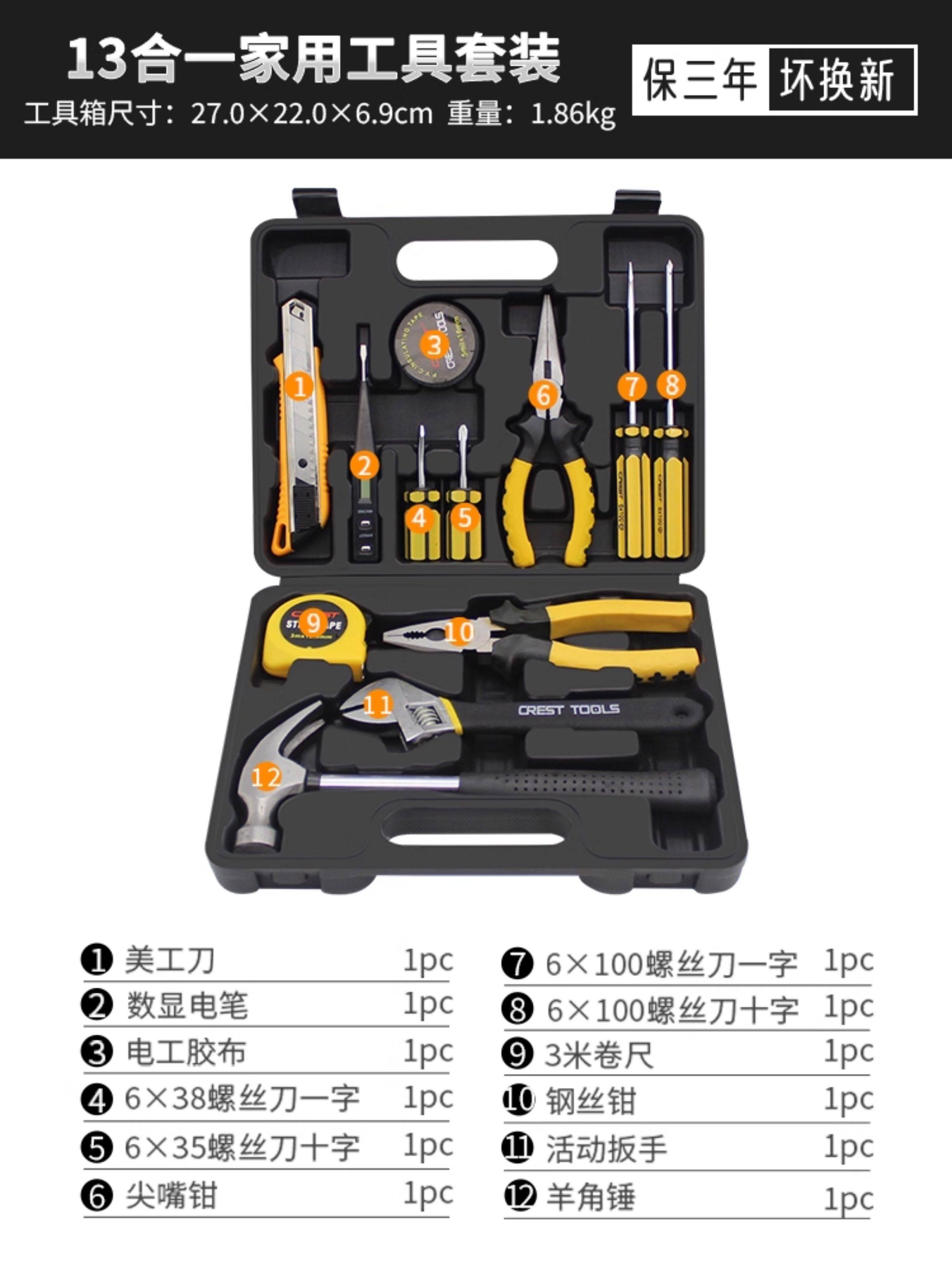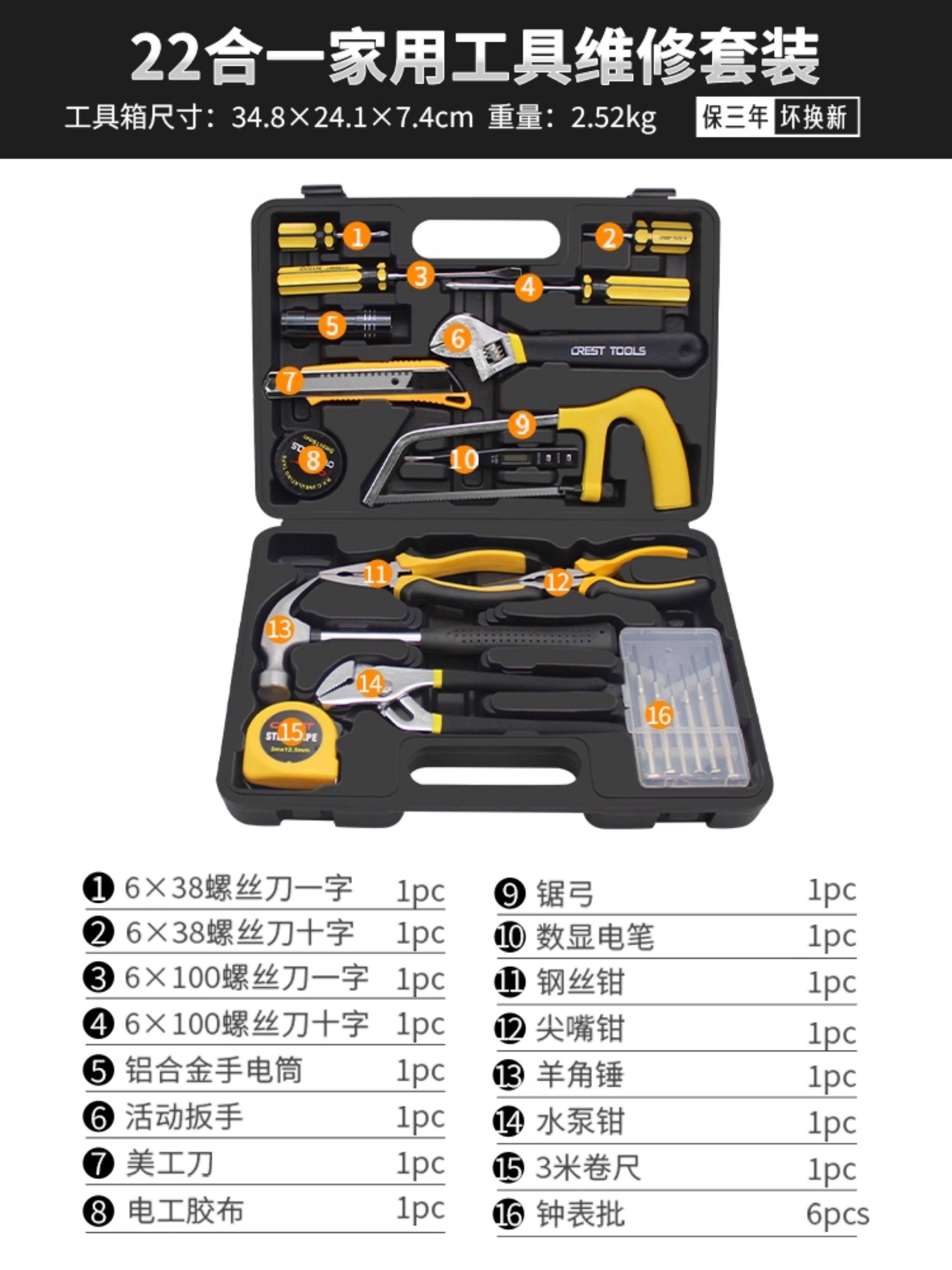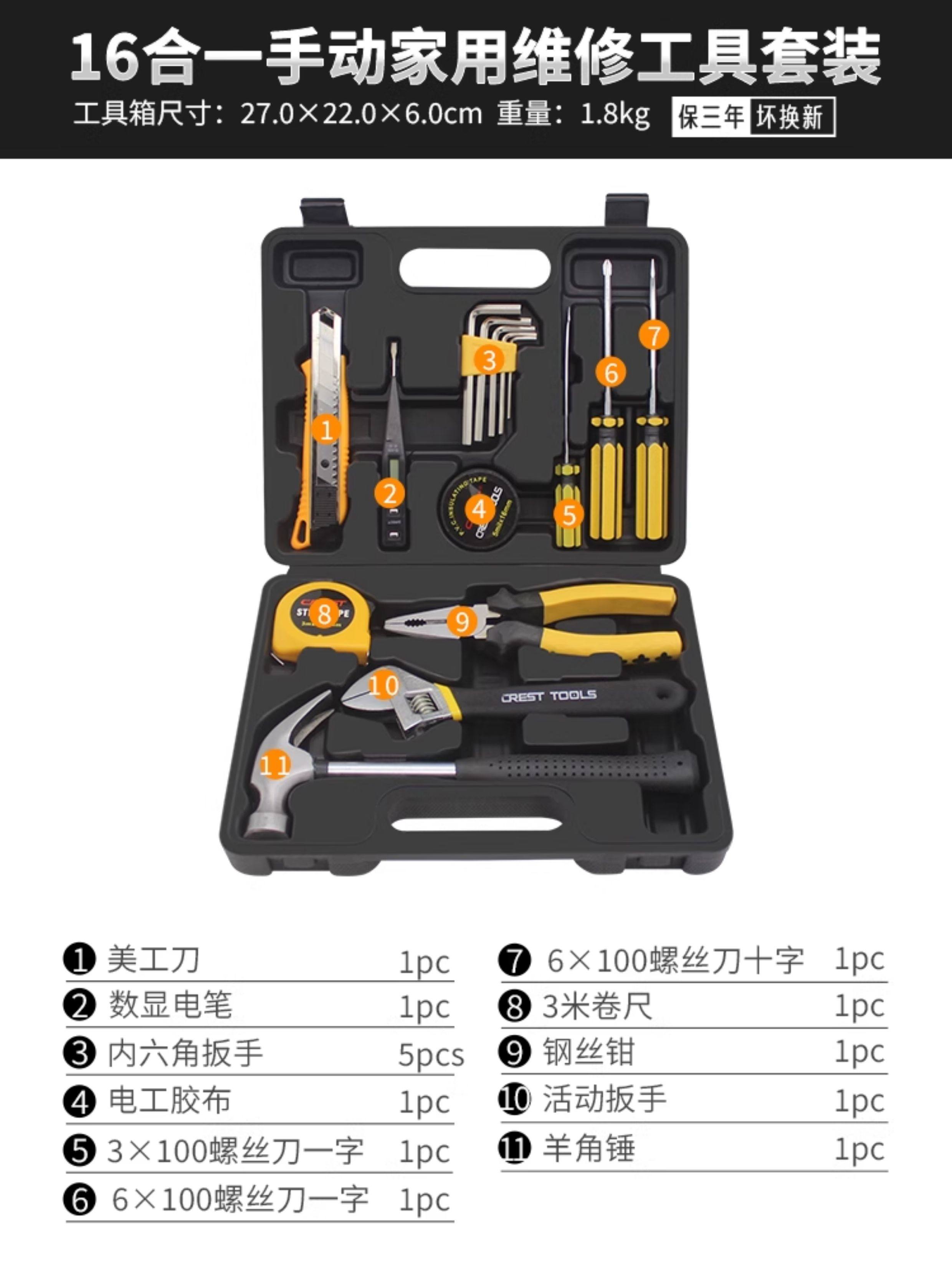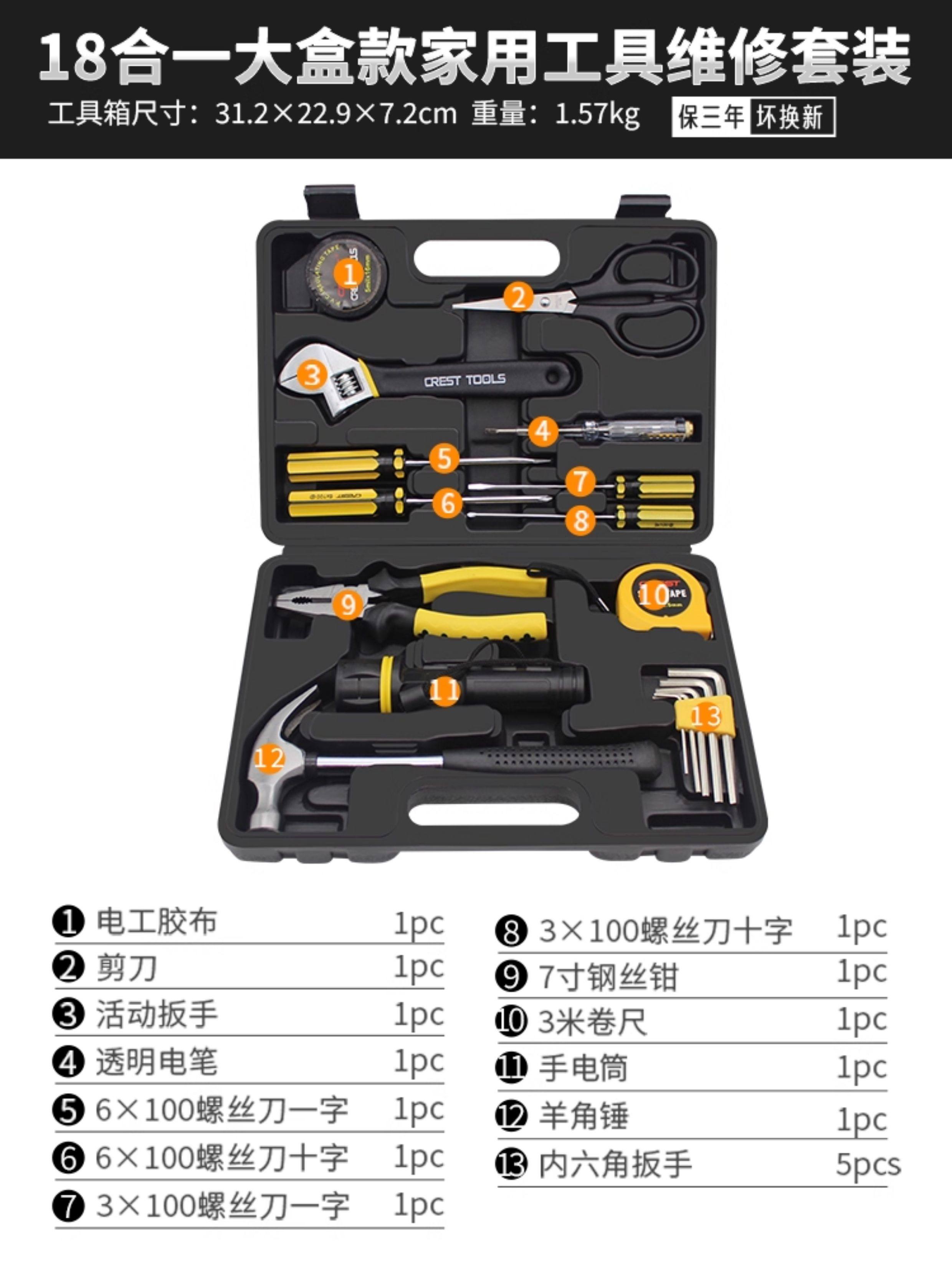 | Color Classification | 12-in-1 Household Tool Set[Promotional Money],11+1 Household Tool Set[Home Bi Equipment],16-Piece Household Tool Set[Home Bi Equipment],13-Piece Household Tool Set[Routine Maintenance and Disassembly],18Pc Household Tool Set[30% of Customers Choose the Large Box],22-Piece Household Tool Set[48% Customer Choice],16-in-1 Home Repair Kit |