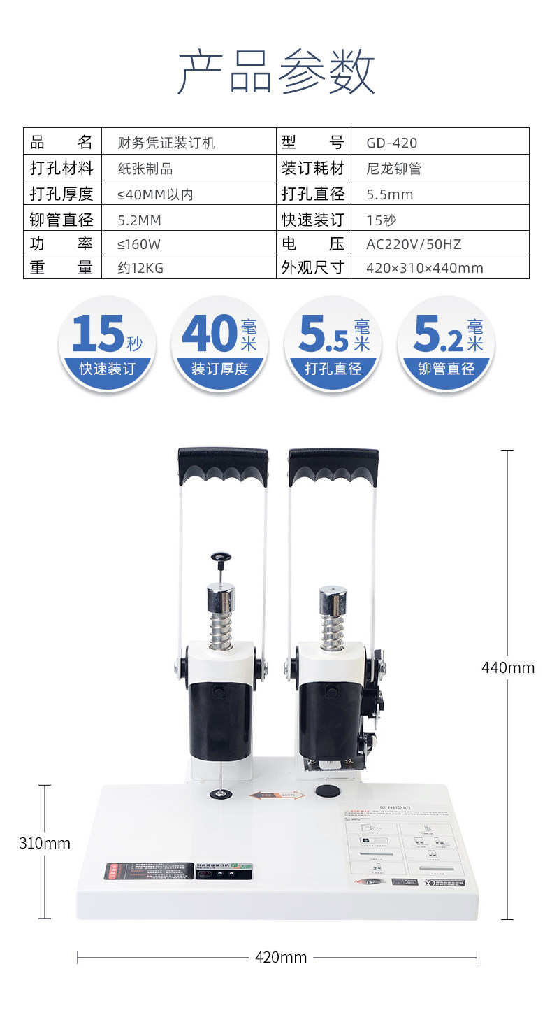 Good Gd420 Laser Positioning Binding Machine Voucher Punching Machine Accounting Financial Document Manual Small Wire-Free Glue Binding Machine Accounting Receipts Fully Automatic Hot Melt Riveting Electric 4cm Binding Machine