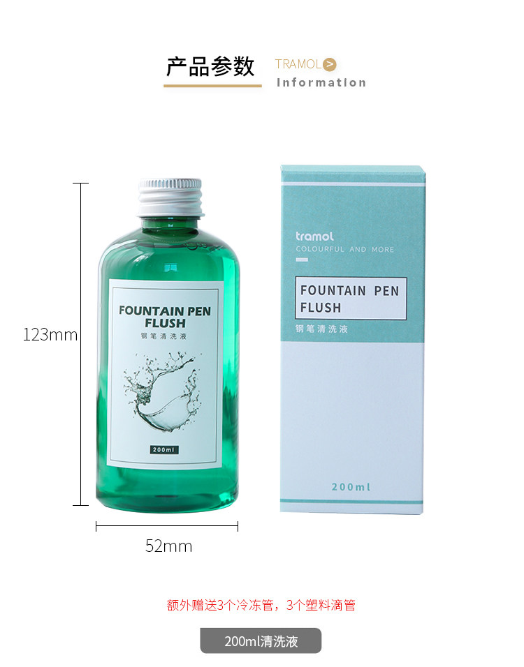 [Tramol Fountain Pen Cleaning Solution] Special Cleaning Solution for Fountain Pen Ink Stains and Dirt, Pen Cleaning Solution 200ml, Comes with a Pen Cleaning Tool Kit