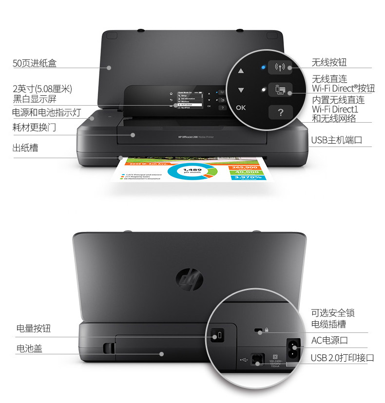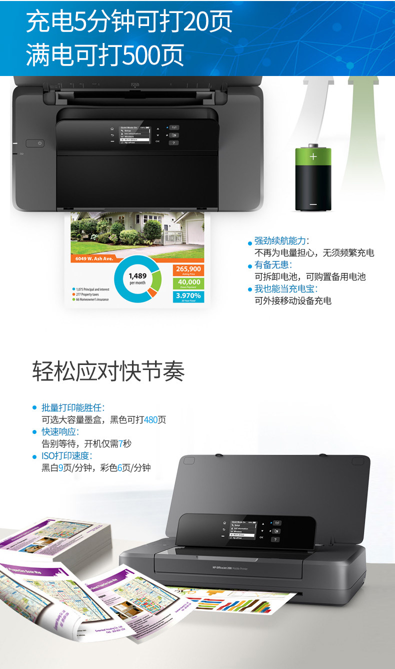 Hp Officejet 200 Mobile Portable Printer A4 Colorful Inkjet Printer Small Mini Wireless Wifi Home Mobile Office Commercial Printer Oj200 Oj258