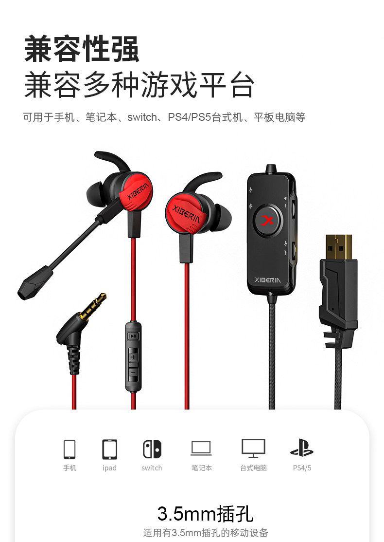 Siberia Mg-1Pro Gaming Headset In-Ear with Microphone 7.1 for Computer, Mobile Phone, Tablet, E-Sports Headset