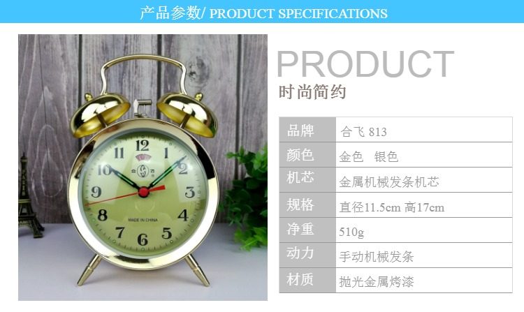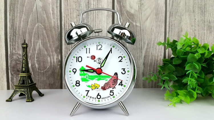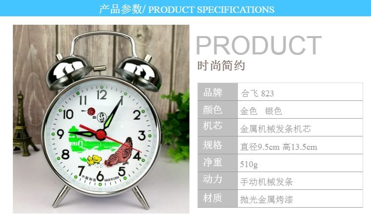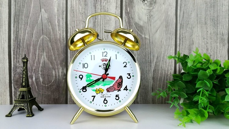 Authentic He Fei Metal Chick Pecking at Rice Table Clock, Mechanical Alarm Clock, Wind-Up, Old-Fashioned, Retro, Nostalgic, Student Bedside Clock