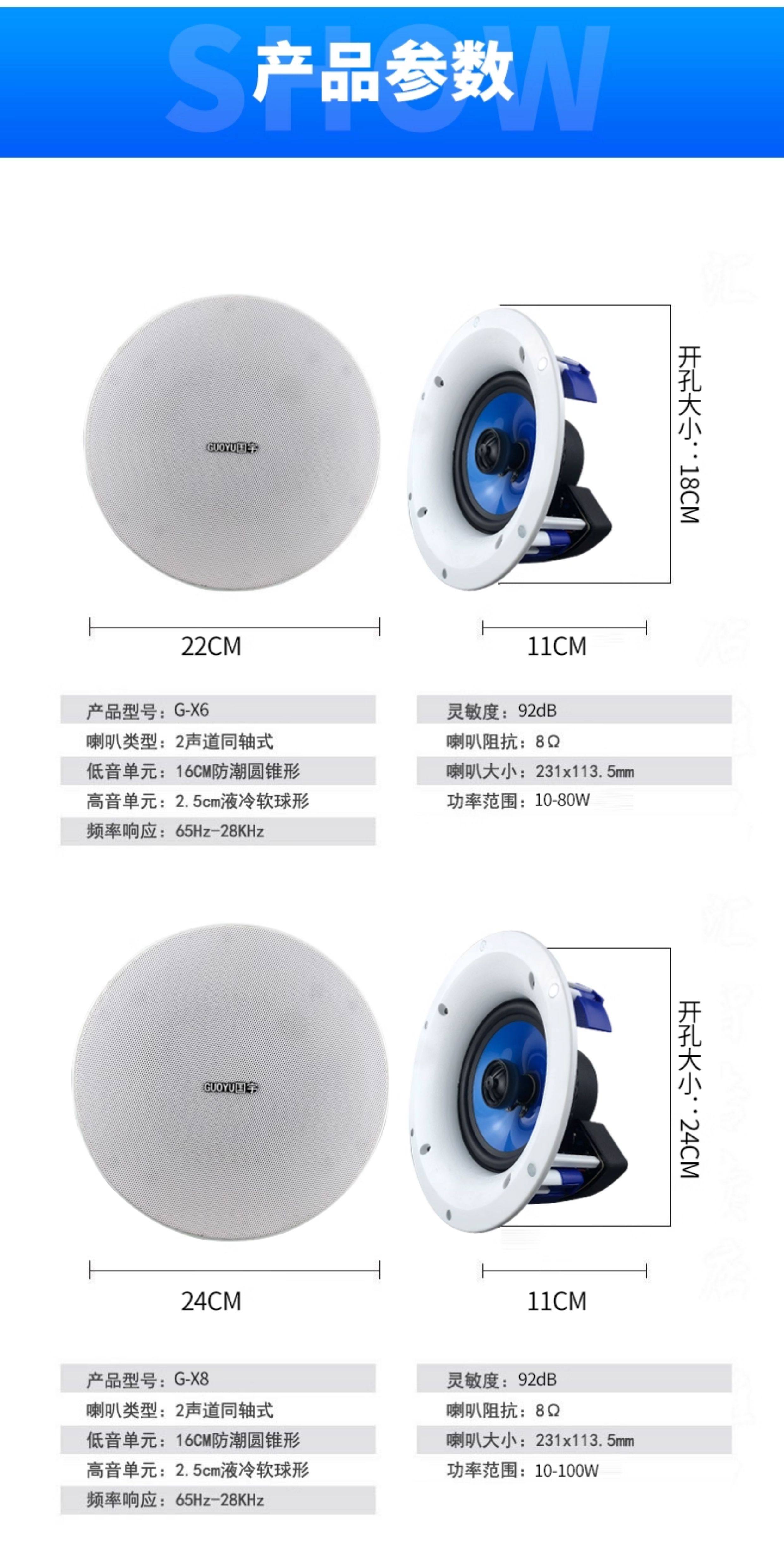 Guoyu G-96H Fixed-Resistance Ceiling Speaker Ceiling-Mounted Audio Hifi Speaker Stereo Home Theater Subwoofer