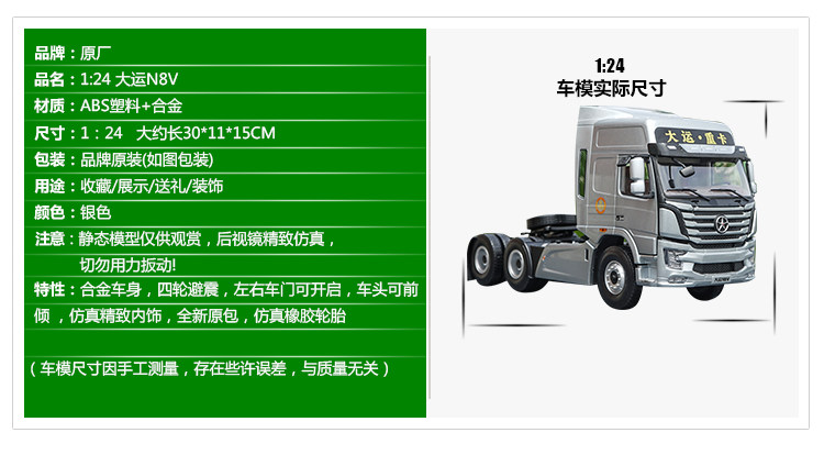 1:24 Original Dayun N8V Tractor Truck Model, Trailer, Dayun Heavy Truck Model, Alloy Car Model