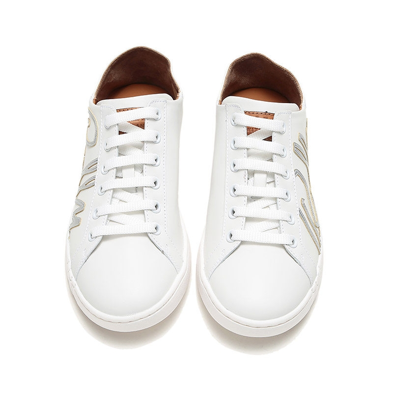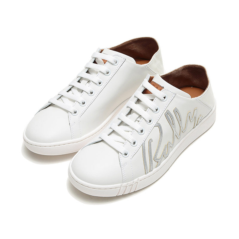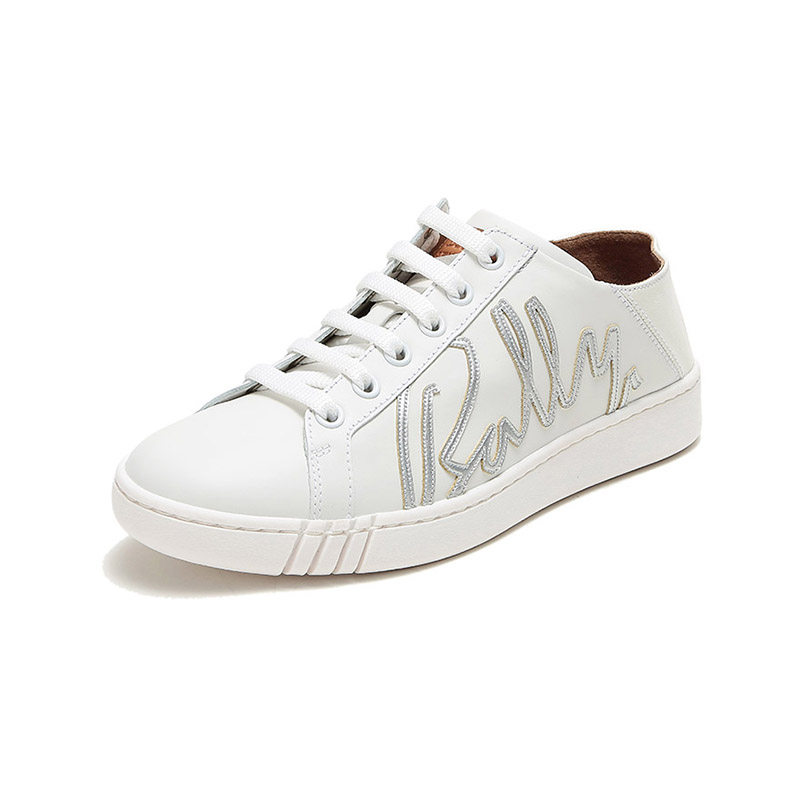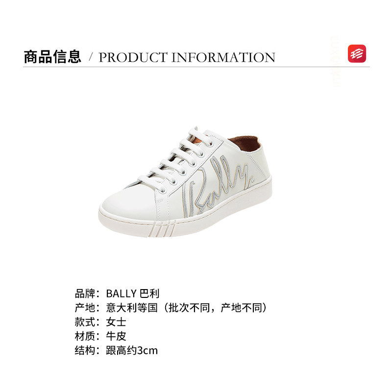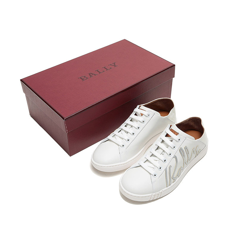 Bally/Bally Women's Embroidered Leather Sneakers, Slip-On White Shoes Wisen Bally
