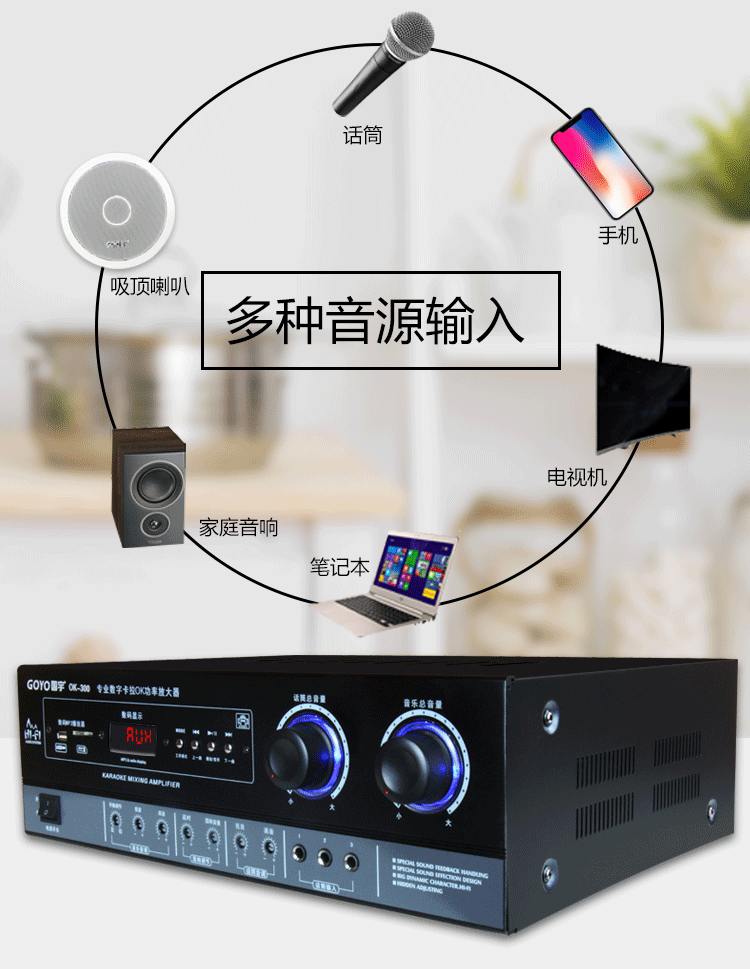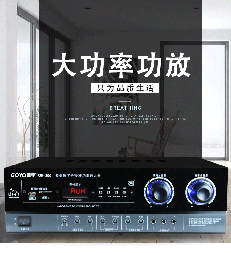Guoyu 300W Fixed Resistance Hifi High-Power Amplifier Karaoke Home Ktv Stage Av Two-Channel Speaker
