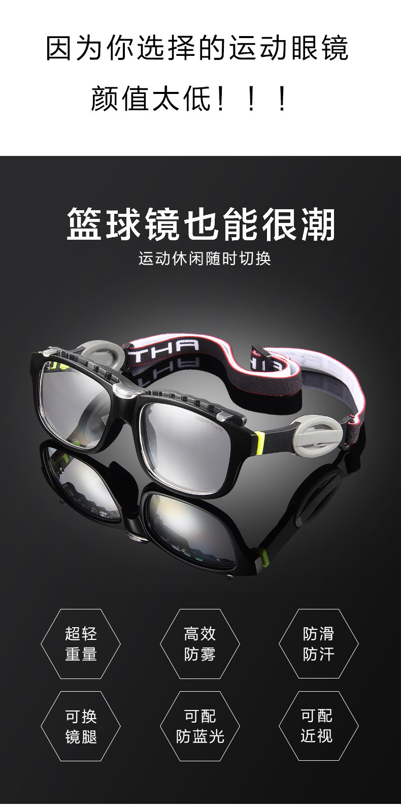Basketball Glasses, Sports Glasses Frames, Special for Playing Basketball, Anti-Fog and Anti-Collision, Can Be Equipped with Myopic Men's Football Eye Protection
