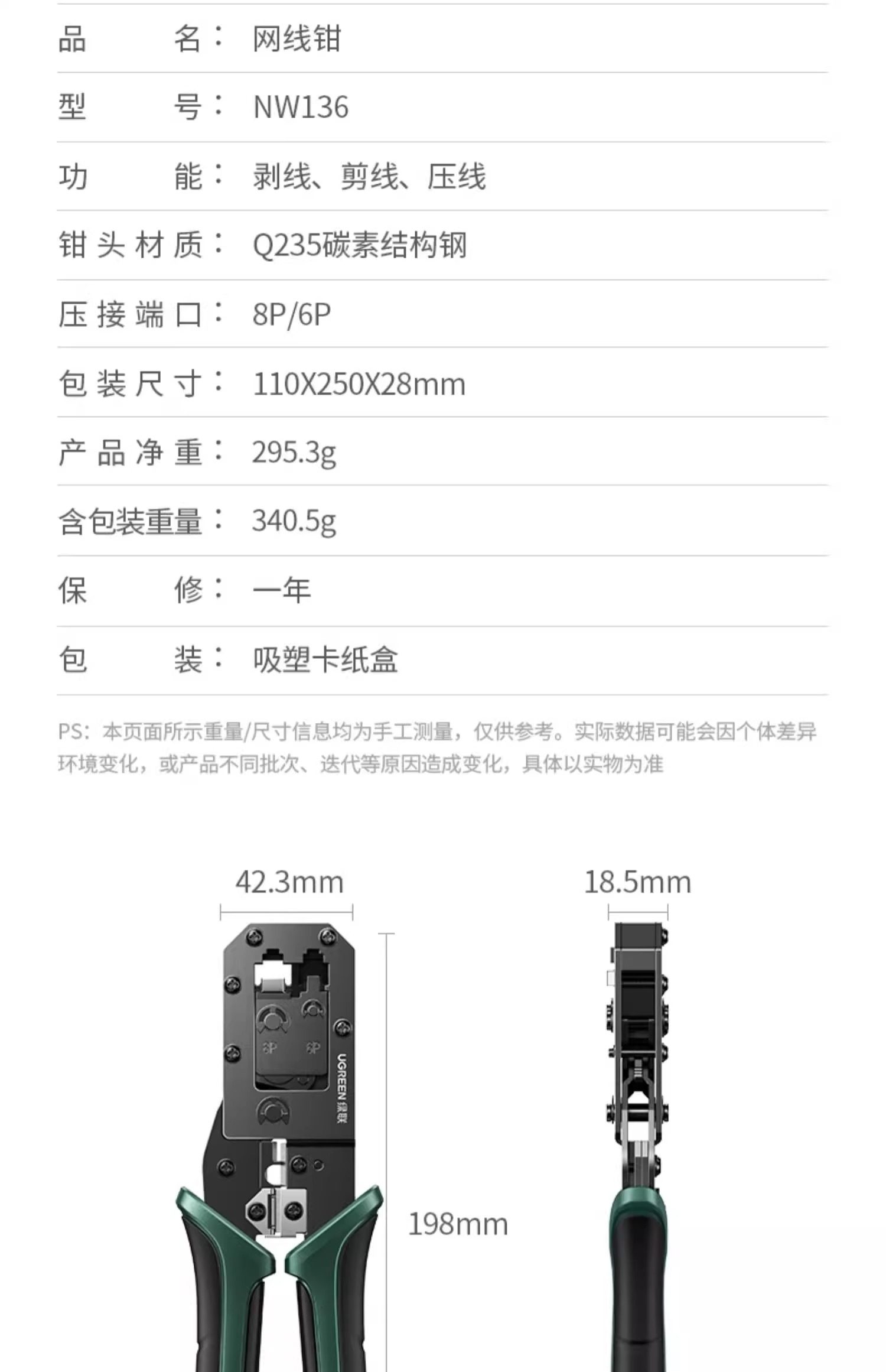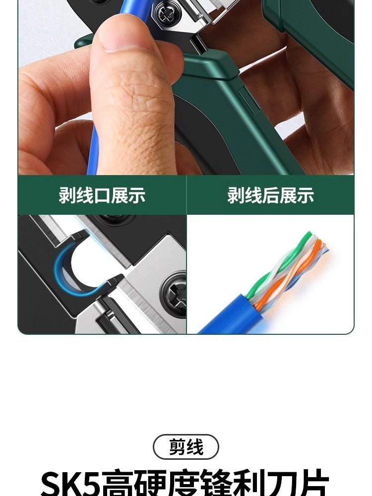 | Color Classification | [Basic Model] Multi-Function Interfaceâ Applicable to 8P 6P 4Pâ Accurate Crimping,[Professional Model] Accurate Card Slottingâ Anti-Slip Handleâ Sharp Blade,[Engineering Upgrade] Thickened Clamp Bodyâ Circlip Designâ Labor-Saving and More Durable,ăFull-Function ModelăCompatible with Cat5, Cat6, Cat7, and Cat8 Ethernet Cablesâ Save Time and Effort,Network Crystal Head Package [1 Network Cable Pliers + 10 Category 5E Crystal Heads],Network Crystal Head Package [1 Network Cable Pliers + 50 Category 5E Crystal Heads],Network Crystal Head Package [1 Network Cable Pliers + 10 Category 6 Crystal Heads],Network Crystal Head Package [1 Network Cable Pliers + 50 Category 6 Crystal Heads] |