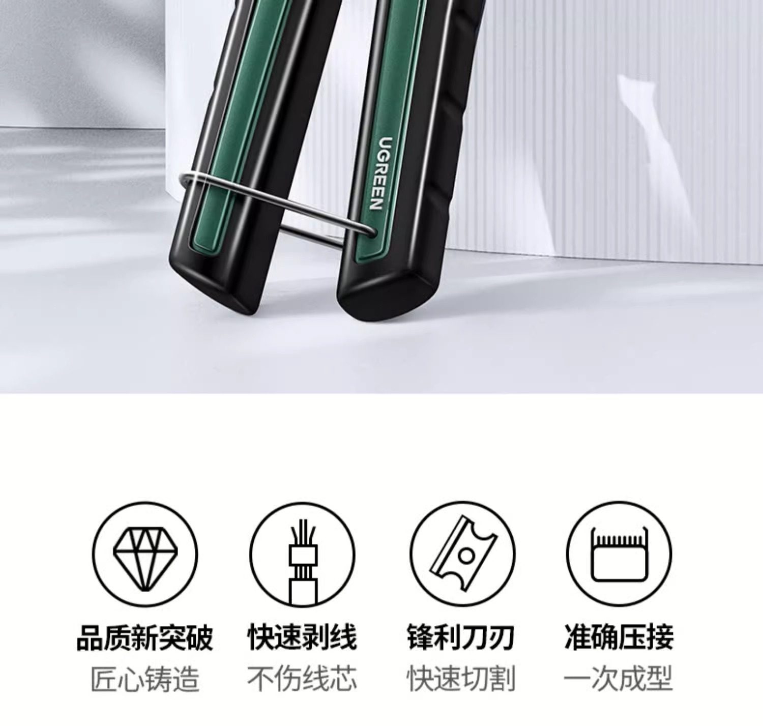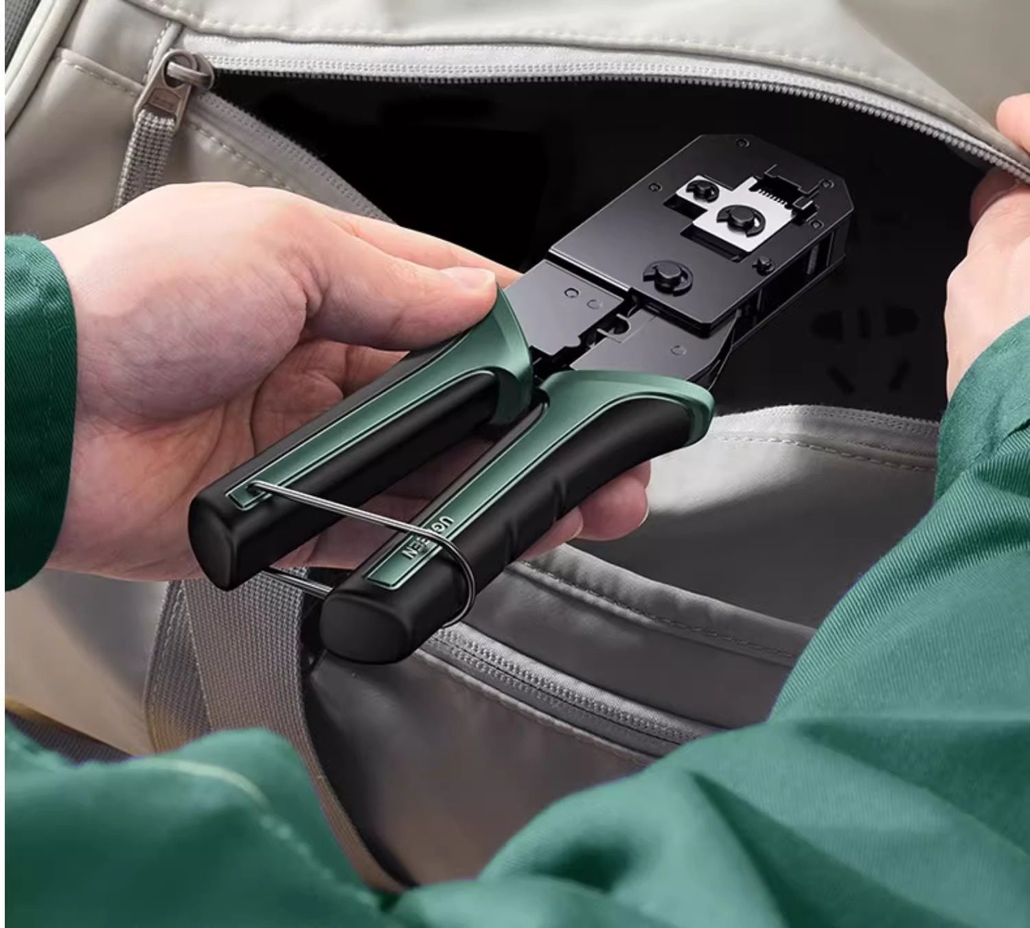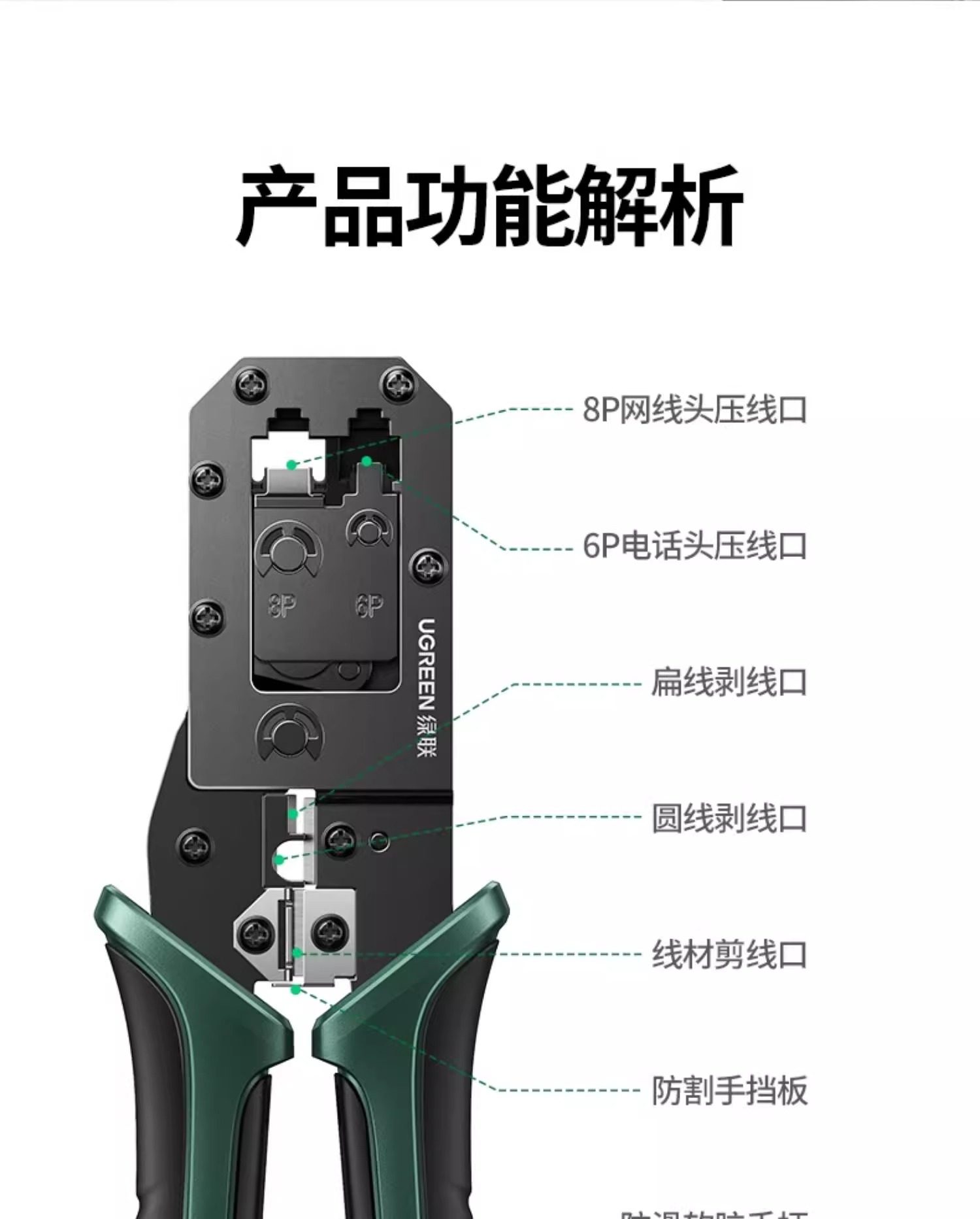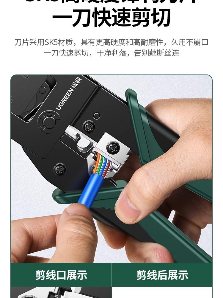Green Network Cable Pliers, Category 5E/6 Crystal Head Multi-Functional Professional-Grade Crimping Pliers, 8P6P Telephone Broadband Network Tool, Three-In-One Rj45 Engineering Wire Stripping Pliers Set