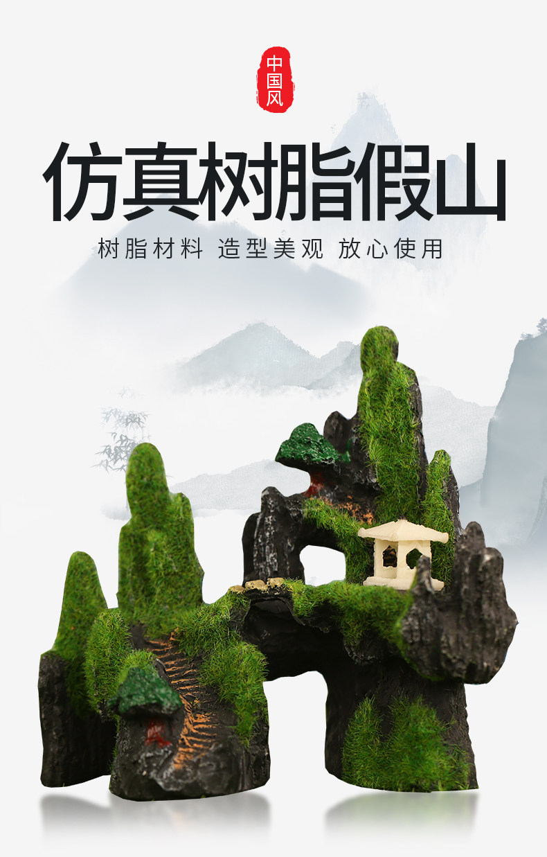 Fish Tank Decoration Landscape Mountain Peak Artificial Rock Aquarium Fake Aquatic Plants Scenery Fish Scene Simulation Ornaments Resin Artificial Rock